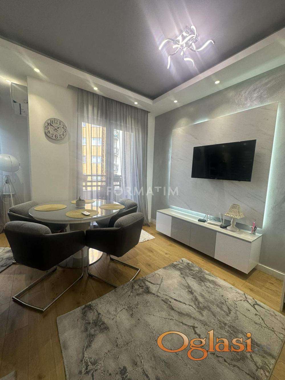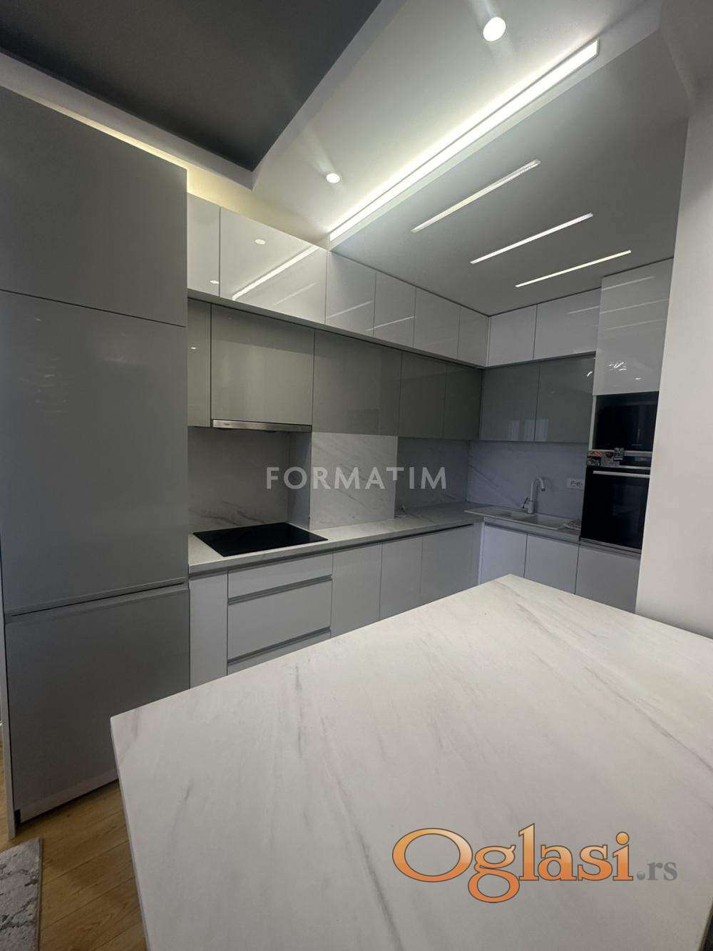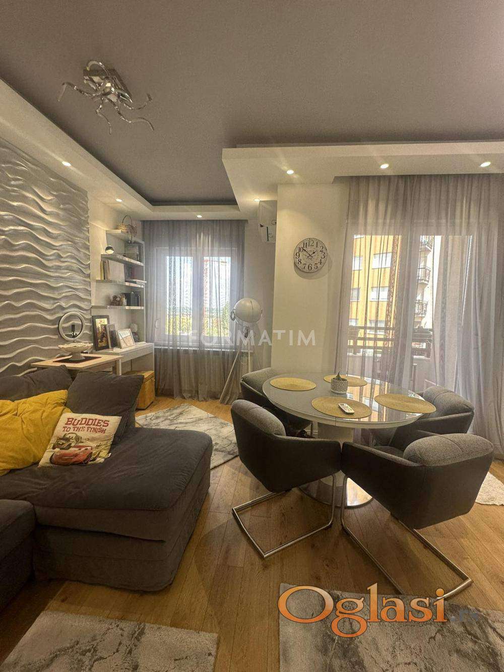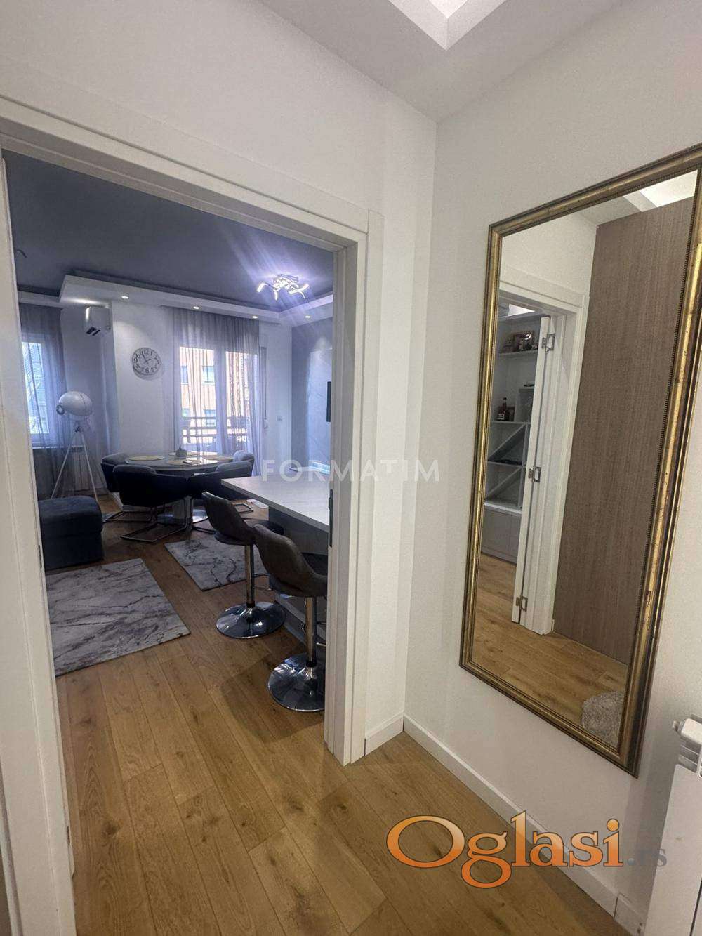 Karaburma, Duke Mick Krstić. Luxurious three-room apartment on the first floor of 81m². Gas heating, low costs. The apartment has two terraces. Three entrances to the building. There is the possibility of renting out two garage spaces for a monthly fee of €100 per garage space. Pets are not allowed. The apartment is available for occupancy from June 1, 2026.
