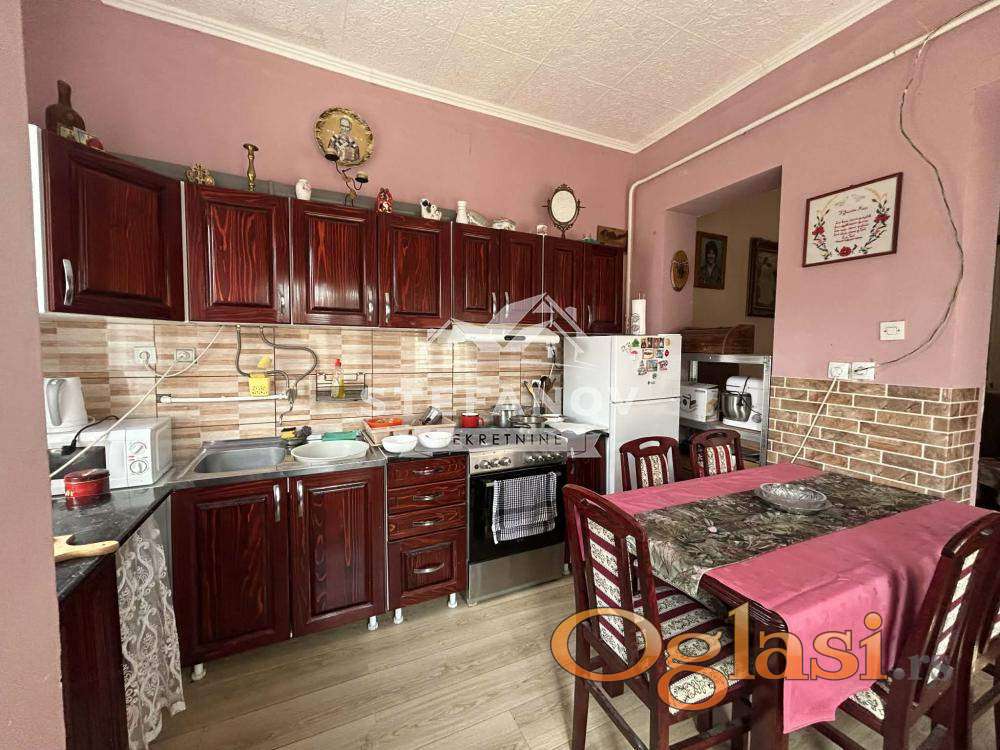 Spratna salonska kuća u naselju Bagljaš površine 190 m2 na placu od 4,69 a. Nalazi se na uličnom delu parcele i poseduje kolski ulaz. Prizemlje se sastoji od hodnika, velikog dnevnog boravka, kuhinje sa trpezarijom, ostave, kupatila i vešeraja. Sprat čine dve sobe od kojih jedna ima izlaz na manju terasu i nedovršeno kupatilo. Ispod kuće veliki podrum koji je suv i dobro izolovan, idealan za pretvaranje u vinski podrum ili dodatni prostor za relaksaciju. Grejanje na gas, struja trofazna i monofazna (nov strujni sat), po podovima postavljen laminat i keramika, stolarija drvena, dobro očuavana, građena od čvrstog materijala (cigla), po plafonima stukatur. Dvorište ograđeno i čini ga garaža sa kanalom, kao i šupe (koje su za rušenje). Kuća ima dva ulaza - glavni ulaz kao i dodatni ulaz iz dvorišta. Lokacija odlična, na samo par minuta od škola, vrtića, marketa. Moguća kupovina putem stambenog kredita. Cena nije fiksna!