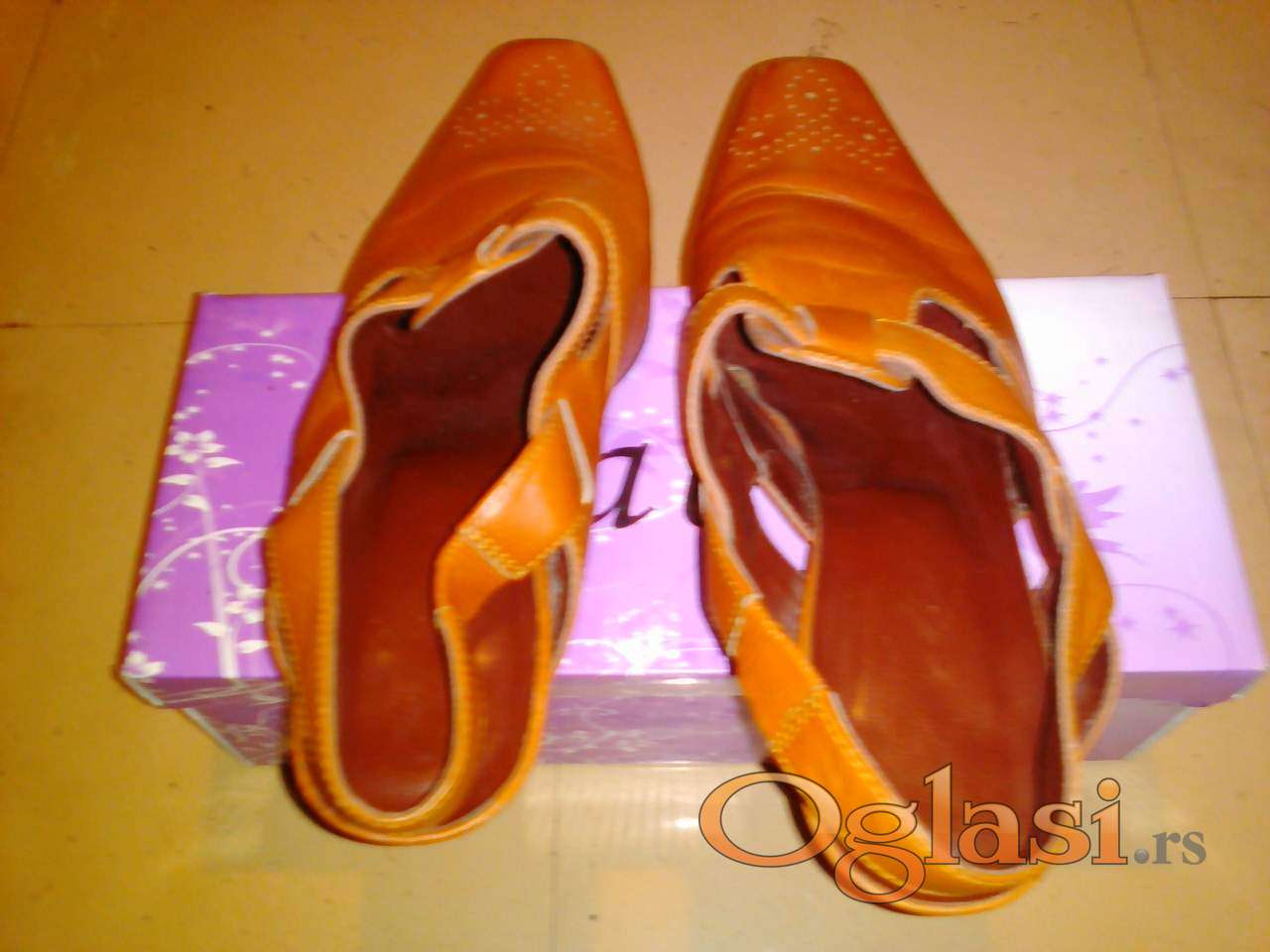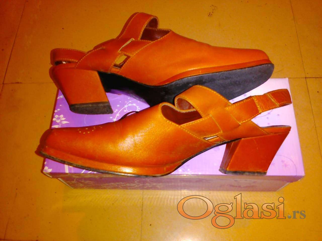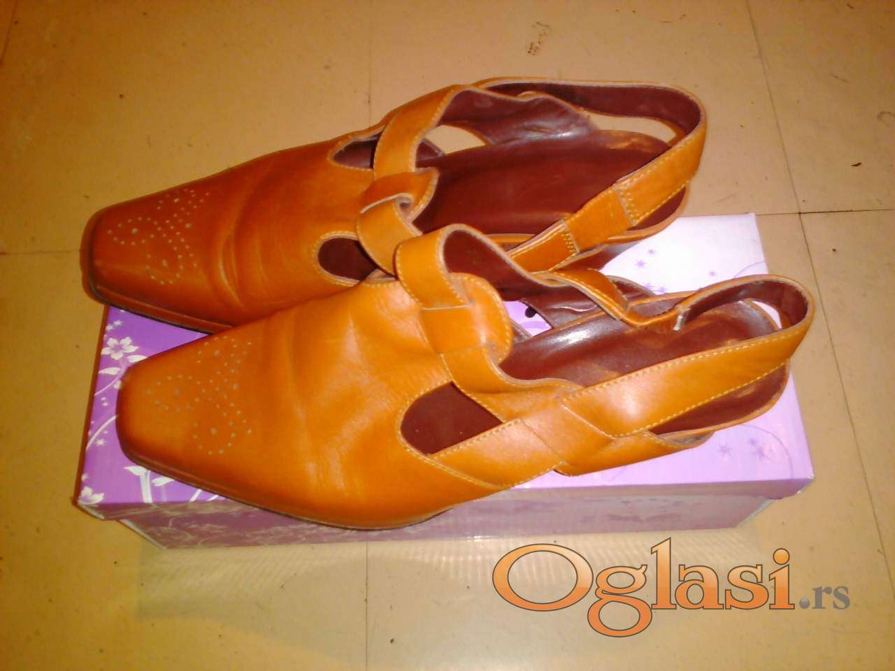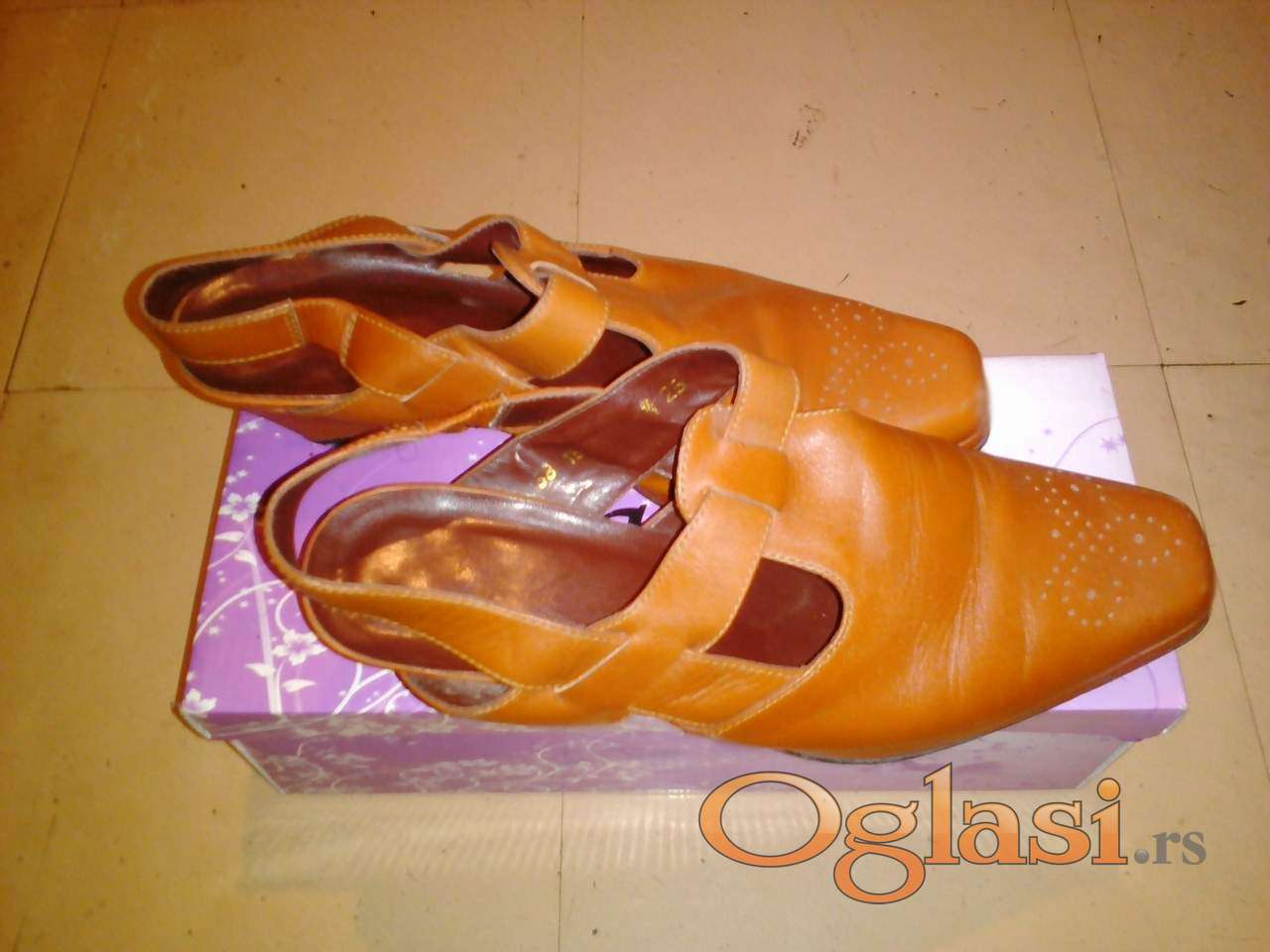KVALITETNE kožne cipele-sandale, boja oker, visina štikle 4 cm, nošene par puta - BEZ OŠTEĆENJA.