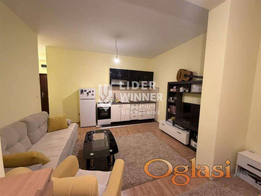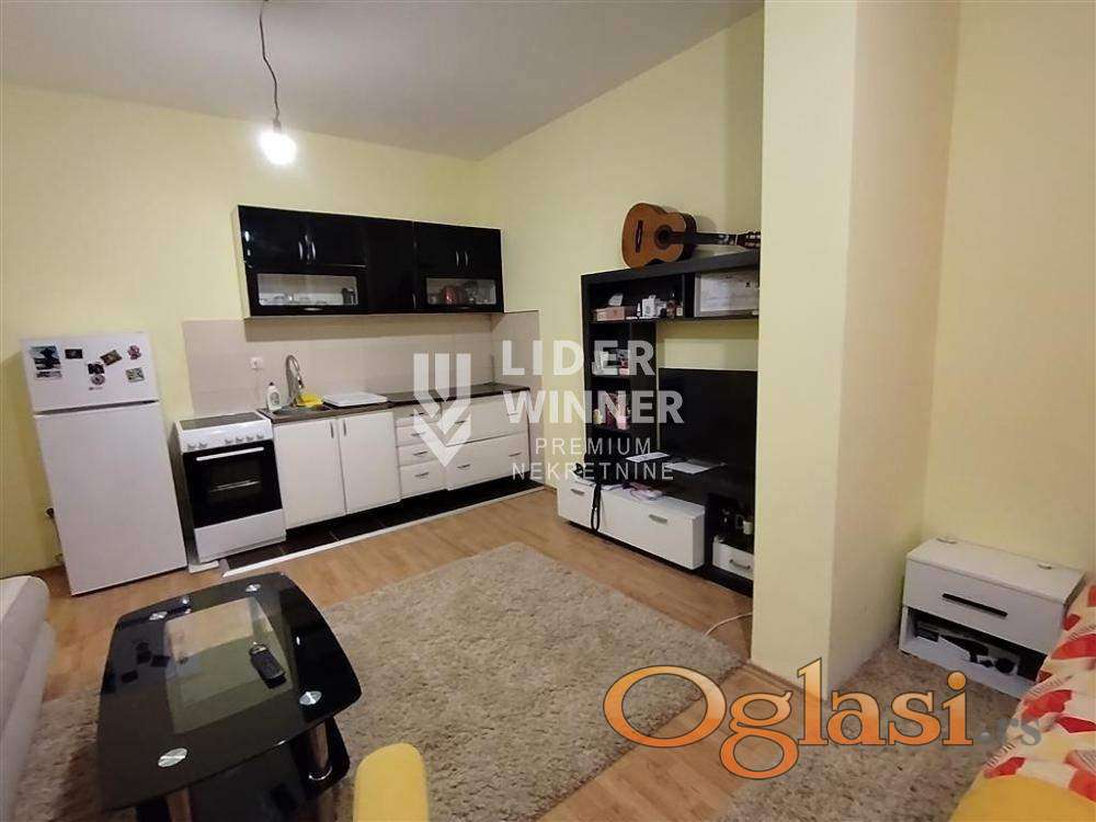 Prostorije: ulazni hodnik, dnevna soba sa trpezarijom i kuhinjom, deo za spavanje, hodnik, kupatilo i terasa.