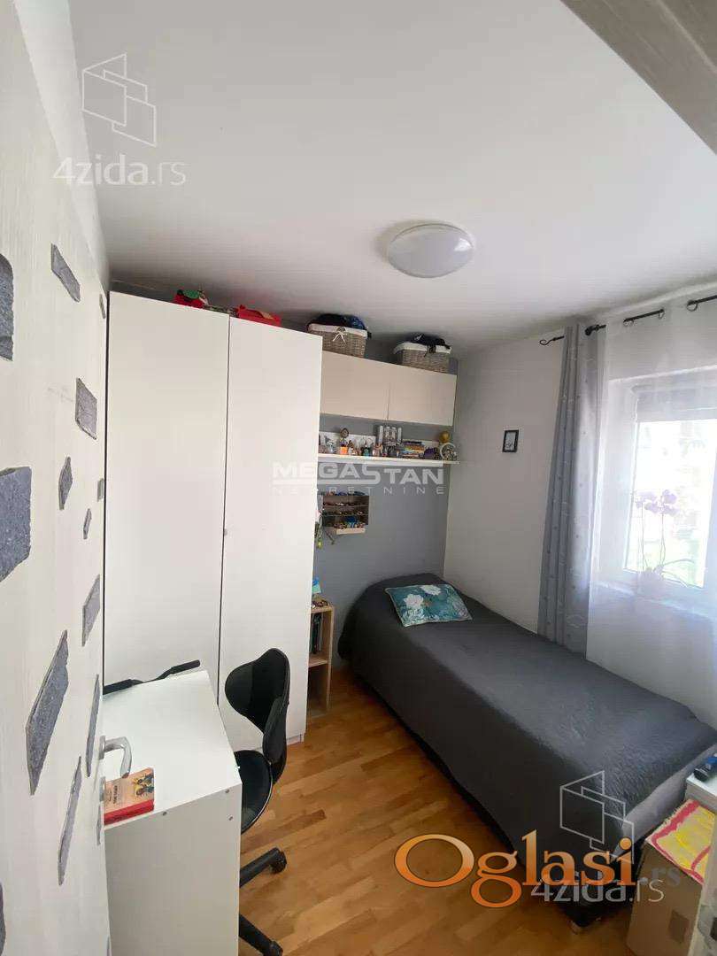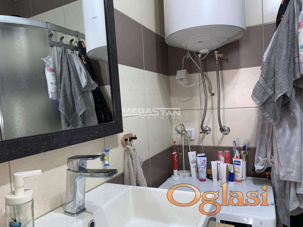 Veća spavaća soba ima posebni deo kao garderober. Prodaje se namešten (nov nameštaj).