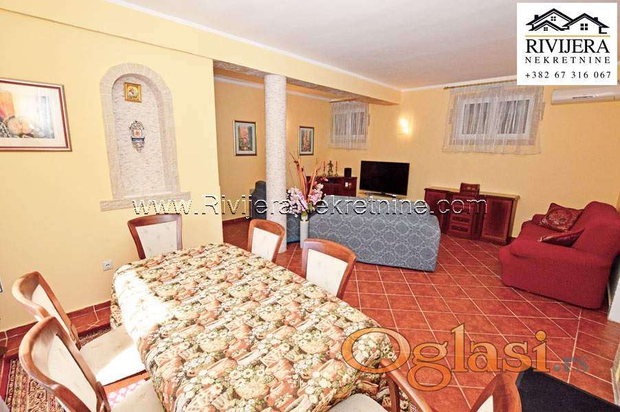 Porodicna kuca na obali mora Zelenika Herceg Novi. Povrsina kuce 114 m2, povrsina dvorista oko kuce 559 m2. Raspored prostorija: ulazni hodnik, tri spavace sobe, dva kupatila, dnevna soba, kuhinja, terasa. Dvoriste kultivisano, poplocano u kamenu. Udaljenost od mora 30 metara. Cijena: 350.000 eura.