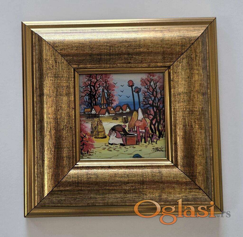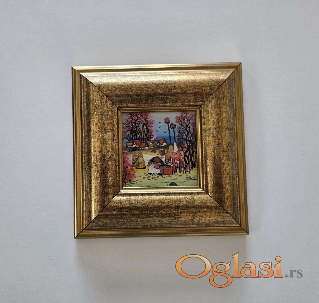 Naiva, ulje na staklu Baka na bunaru. Minijatura. Prelepo umetnicko delo. Slika je uramljena u jako lep ram, dimenzije slike sa ramom 21 x 21. Privatna kolekcija.