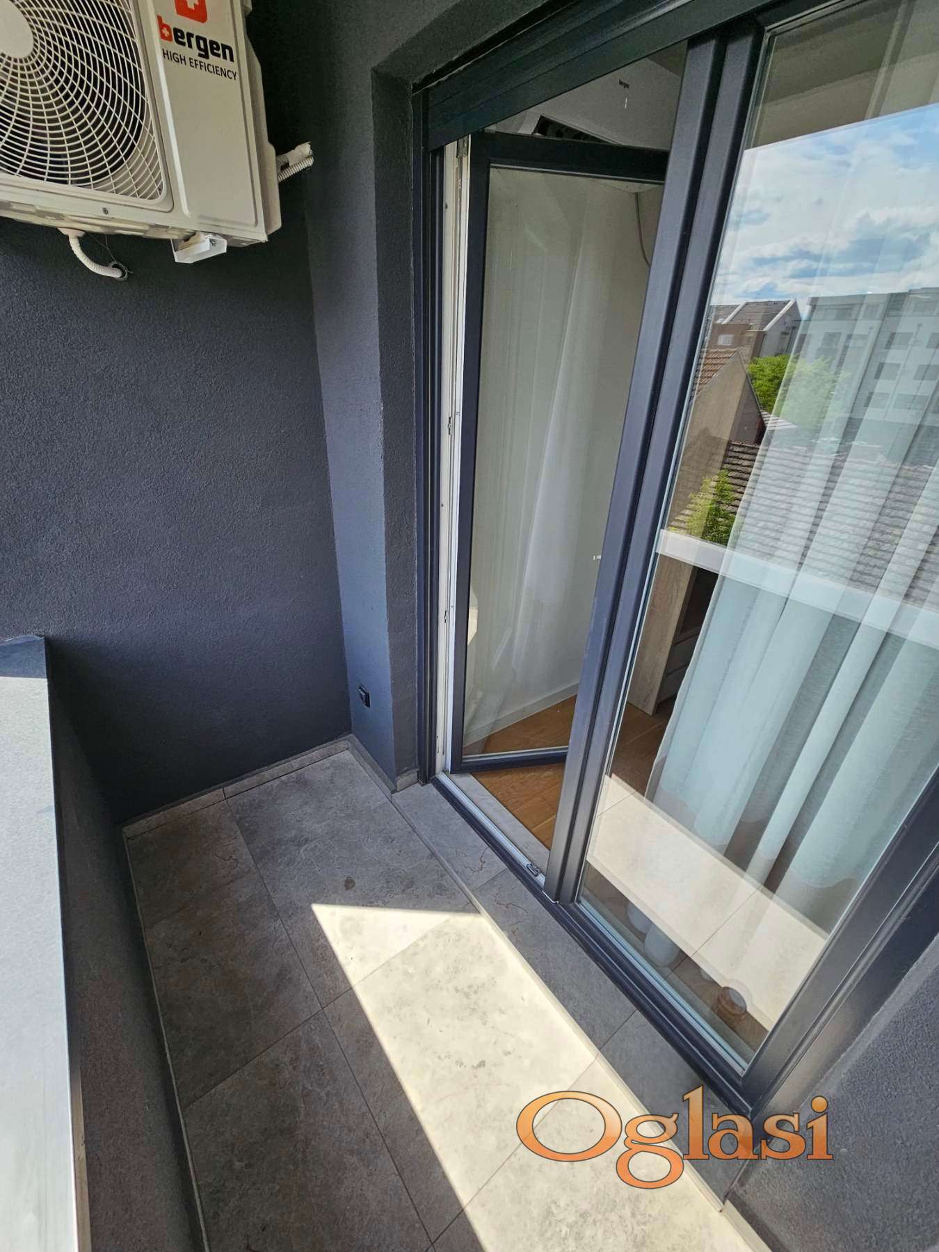 Stan je dvosoban, veoma komforan i funkcionalnog rasporeda. Sastoji se od prostranog dnevnog boravka, velike spavaće sobe, moderno opremljene kuhinje, kupatila i terase. Potpuno je namešten i opremljen svim neophodnim uređajima za svakodnevni život, uključujući i mašinu za sudove, dok postoji mogućnost ubacivanja televizora po potrebi zakupca.