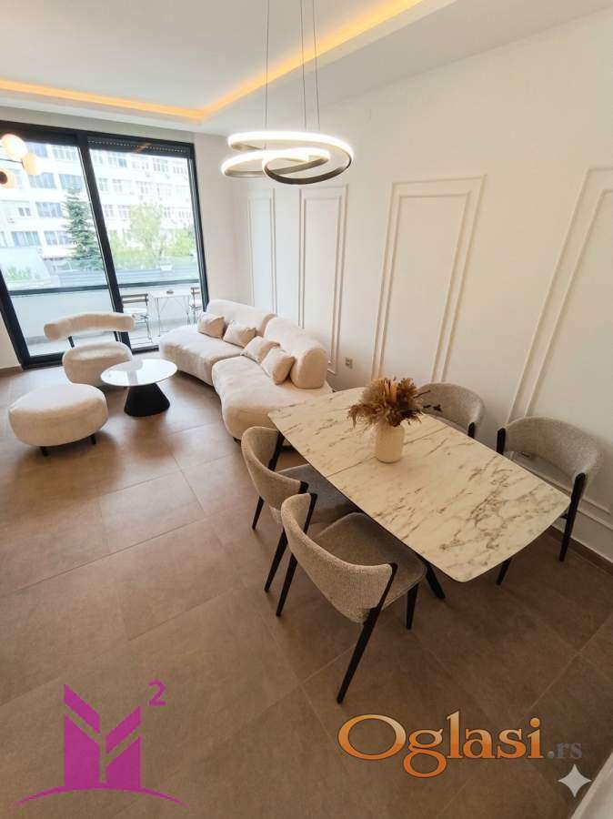 Sastoji se od dnevne sobe, koja je spojena sa kuhinjom i ceo zid je u portalu, 2 spavaće sobe, 2 mokra čvora i 2 terase.