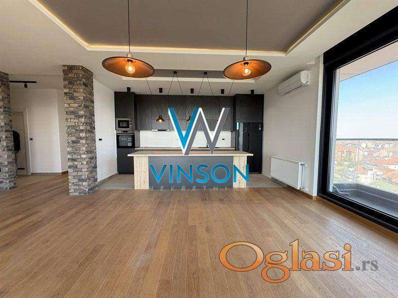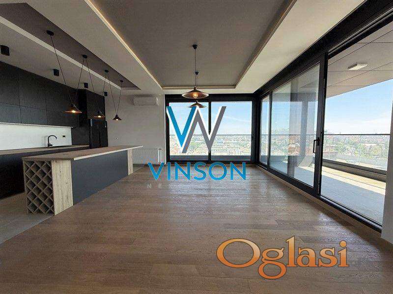 Novi Sad, Sajam, ulica Branka Bajića - Sajam kompleks kula. Ekskluzivno izdvajamo iz ponude komforan, nenamešten po strukturi troiposoban penthouse stan koji se nalazi na jednoj od najatraktivnijih lokacija za stanovanje. Pozicioniran u neposrednoj blizini Bulevara Evrope, Sajma, više trgovinskih i ugostiteljskih objekata. Ovaj nov, neuseljavan stambeni prostor čine prostran i veoma svetao dnevni boravak sa kuhinjom i trpezarijom, degažman, tri spavaće sobe, dva kupatila, dve terase sa prelepim pogledom na grad i Frušku goru. Trostano orijentisan. U ceni zakupa je uračunato jedno garažno parking mesto i podrumska ostava. Useljiv odmah. (Vinson nekretnine, Novi Sad, Reg. br. posrednika: 1085)
