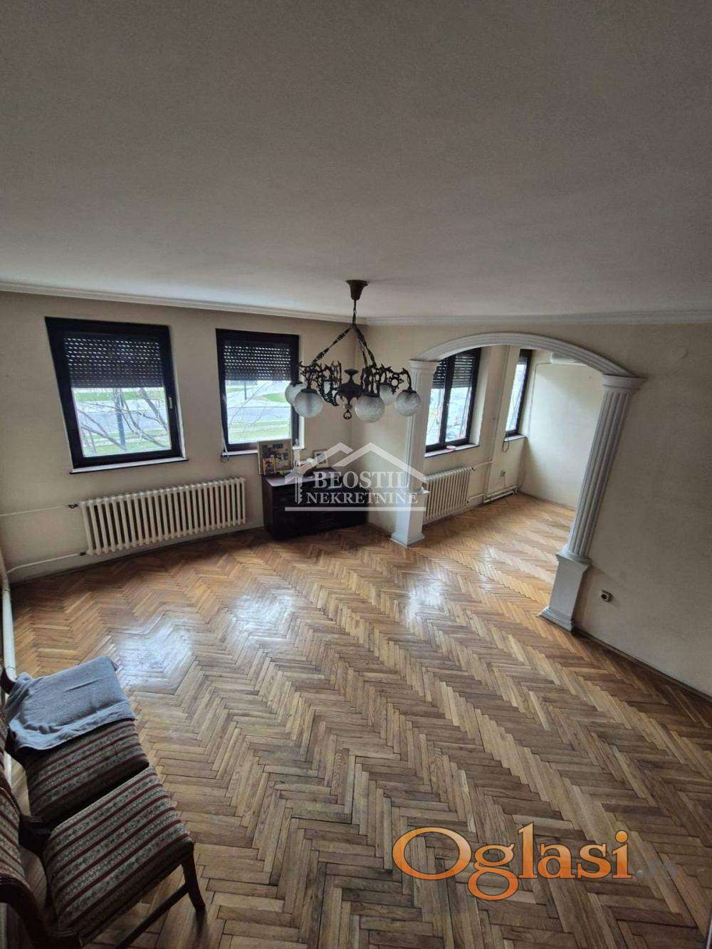 3 prostrane spavaće sobe, veliki dnevni boravak, odvojena kuhinja sa trpezarijom, kupatilo plus toalet, ostava, lođa.