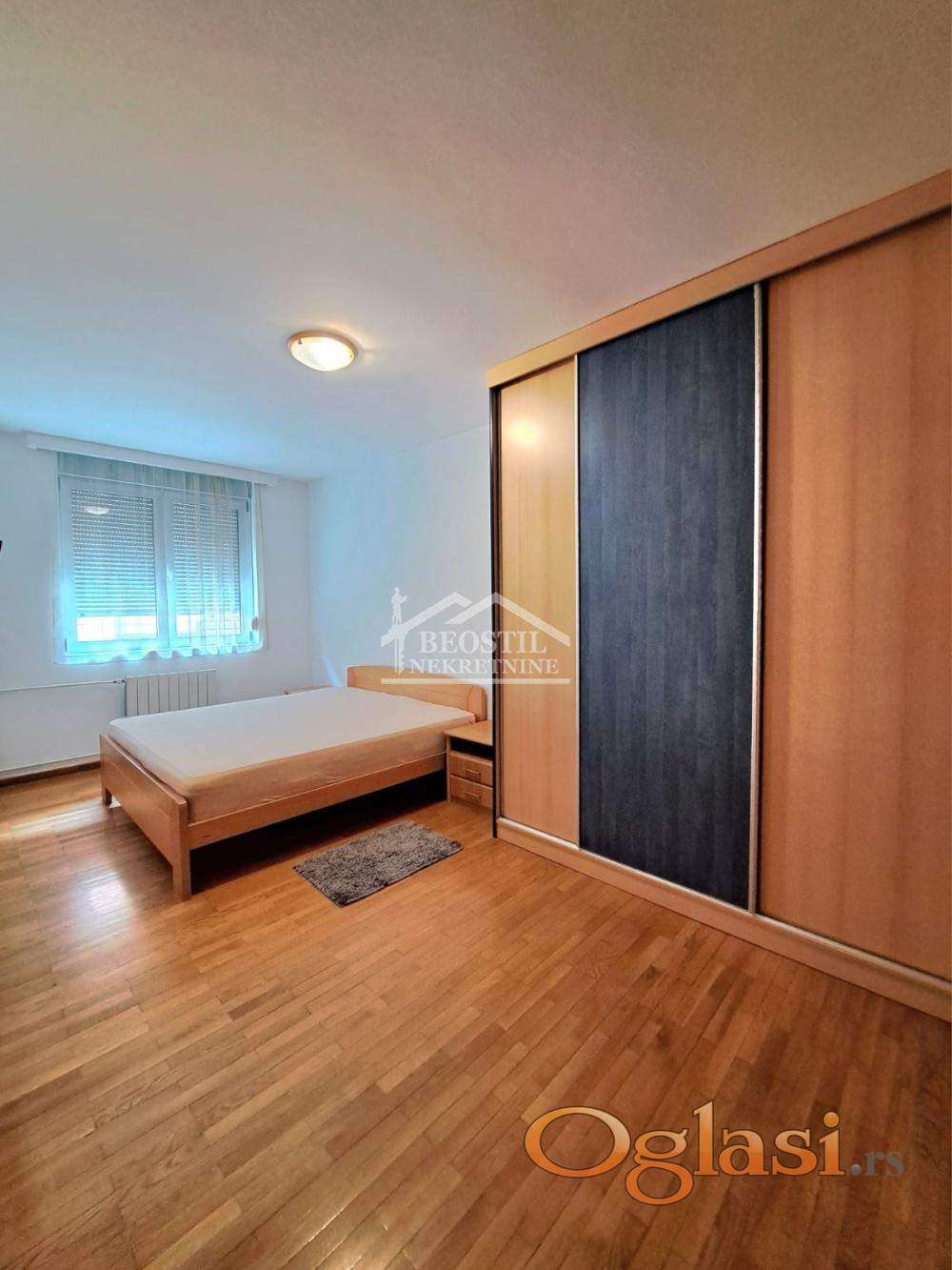 Prostran trosoban stan sa dva kupatila i dva garažna mesta pogodan za porodično stanovanje.