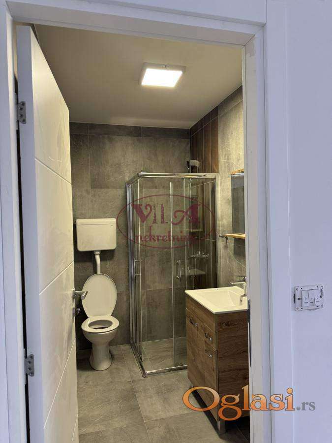 Izdaje se potpuno nov poslovni prostor, pogodan za kancelariju i slično. Poslovni prostor se može iznajmiti prazan sa nameštenom kuhinjom ili komplet namešten sa novim kancelarijskim nameštajem. Prostor se nalazi u okviru poslovne zgrade sa više firmi mirne delatnosti. U prostoru je podno grejanje, video nadzor i ima puno parking mesta.Prostor ima svoje kupatilo. Odlično za duži period poslovanja. Tel. 065/424 55 77.
