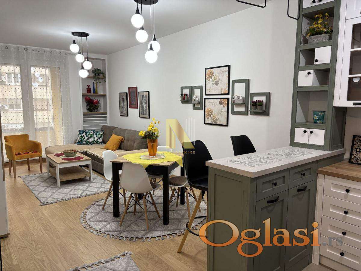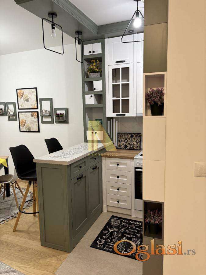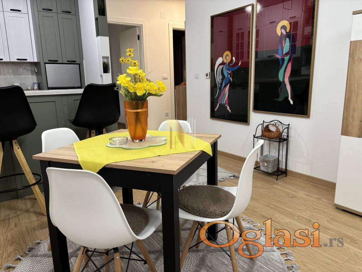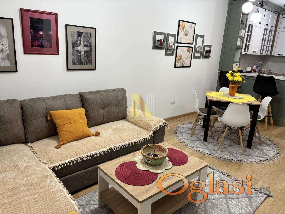 Prostor je pažljivo uređen i kompletno opremljen novim nameštajem i tehnikom, pružajući visok nivo komfora i estetike. Stan se sastoji od dnevnog boravka sa kuhinjom, odvojene spavaće sobe, kupatila i terase.