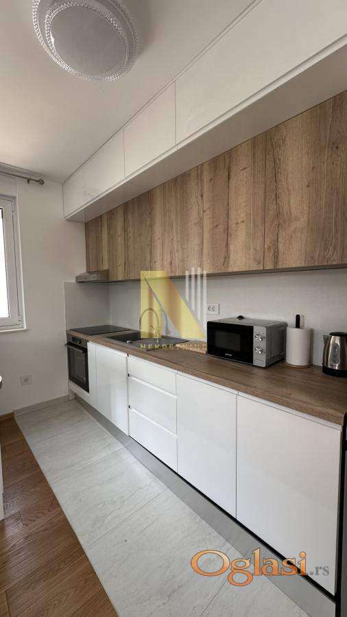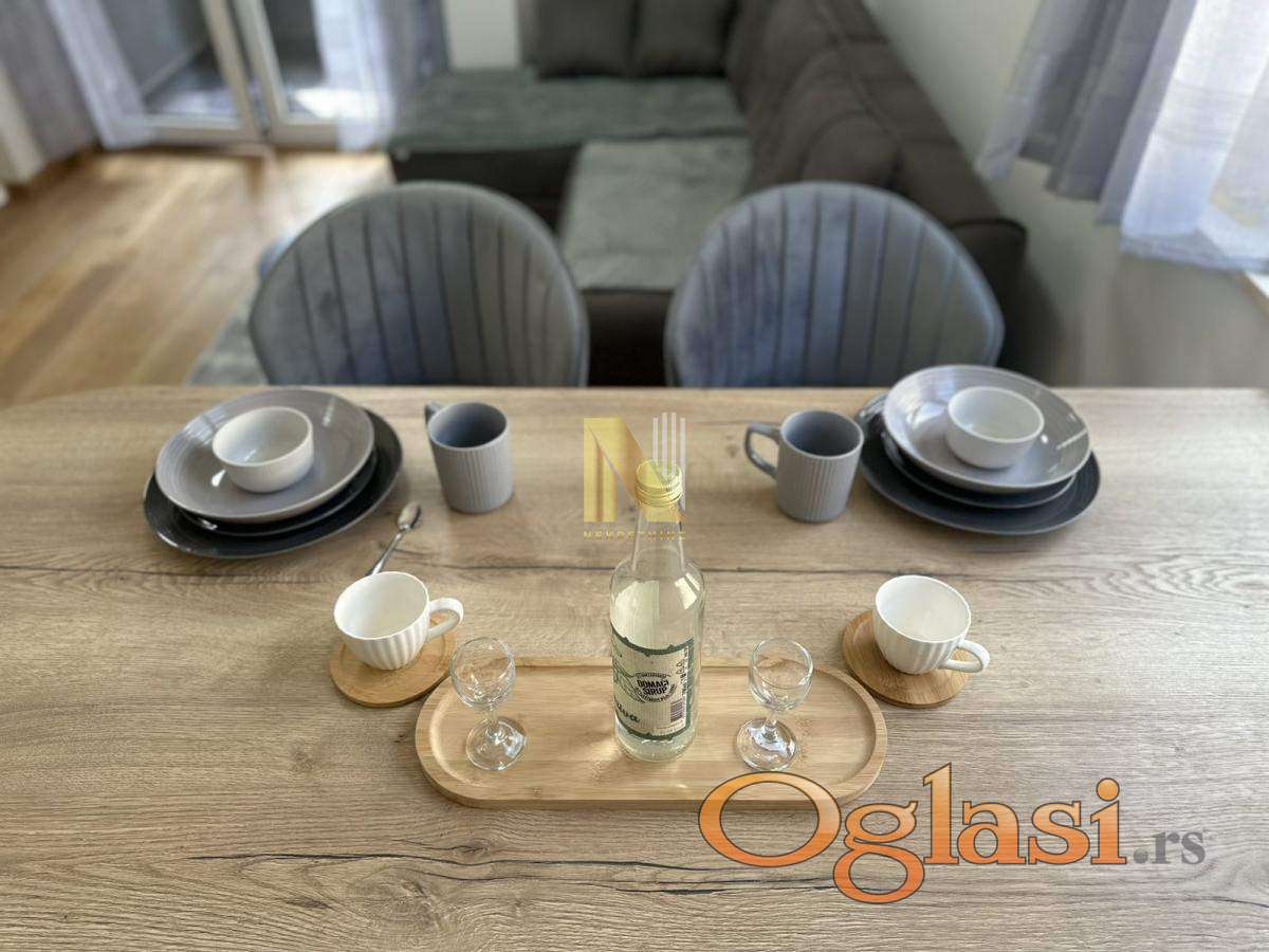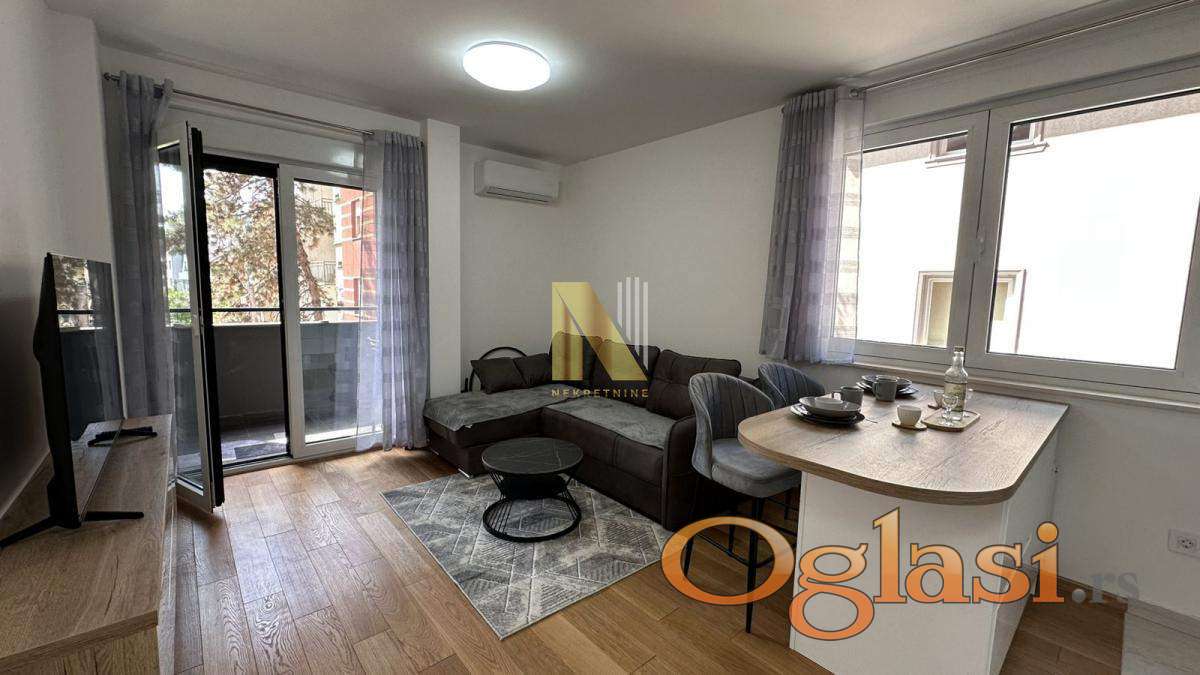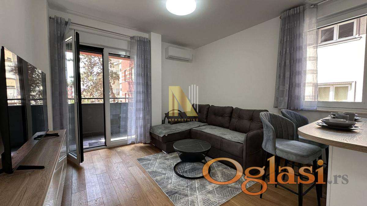 Stan je kompletno opremljen svim potrebnim nameštajem i tehnikom, uključujući veliki TV, i spreman je za useljenje bez dodatnih ulaganja.