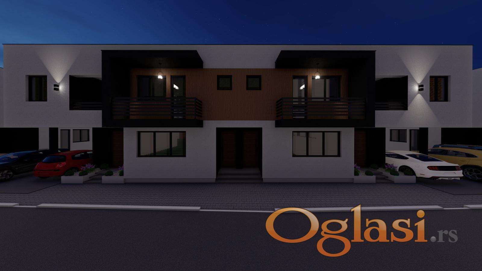 Moderne kuće u nizu u Staroj Pazovi, površine 69 m². Objekti su novogradnja, funkcionalnog rasporeda i kvalitetne gradnje.
