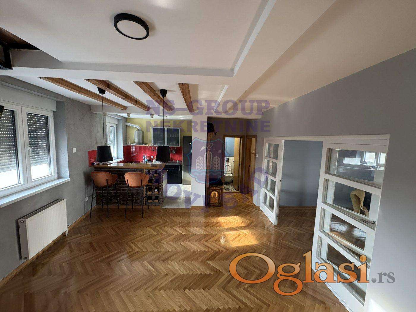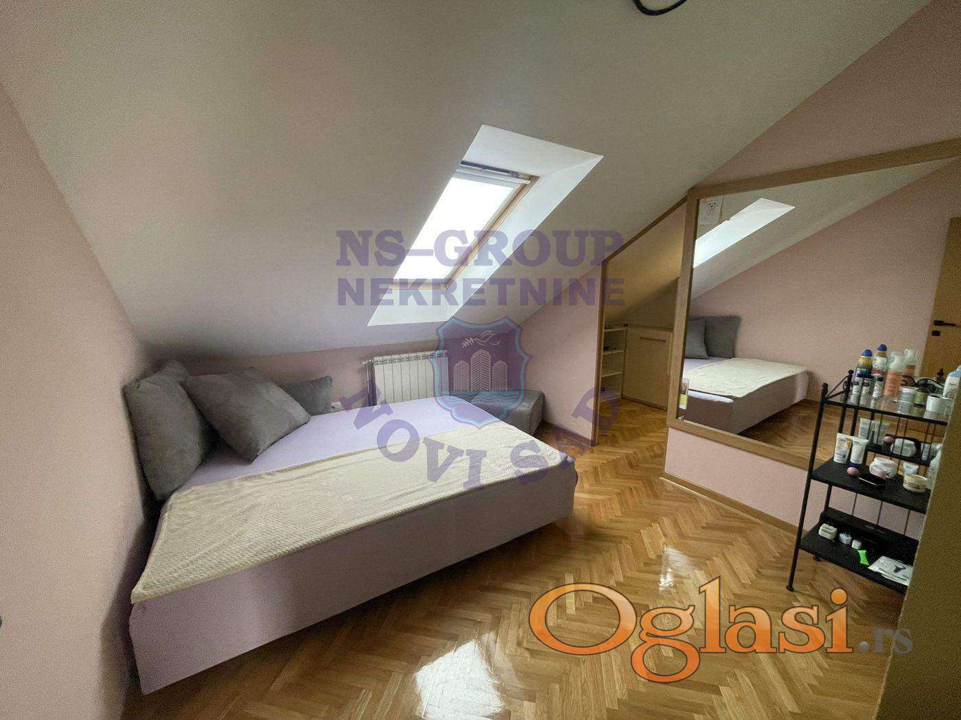Fantastičan porodičan stan na top lokaciji - Trg Marije Trandafil - u neposrednoj blizini pešačke zone i Matice Srpske. Lokacija govori sama za sebe, u blizini se nalazi sav sadržaj neophodan za svakodnevni život, marketi, apoteke, škola, autobusko stajalište i slično... Ovaj komforni stan se prostire na dve etaže, u prizemlju je trpezarija sa kuhinjom, prostrani dnevni boravak, toalet, spavaća soba sa master kupatilom i terasa na koju se izlazi i iz dnevnog boravka i iz spavaće sobe, na spratu imamo tri spavaće sobe od kojih jedna ima svoj walk-in garderober i kupatilo. Kompletno je renoviran i dodatno rađen, nova PVC stolarija sa električnim podizačima roletni, parket je hoblovan, promenjene sve instalacije - prodaje se kompletno namešten. U ceni je garaža u dvorištu zgrade, ukoliko kupcu garaža nije potrebna, cena je za dogovor. Ne propustite da postanete vlasnici nekretnine koja se retko pojavljuje u ponudi, pozovite nas već danas.