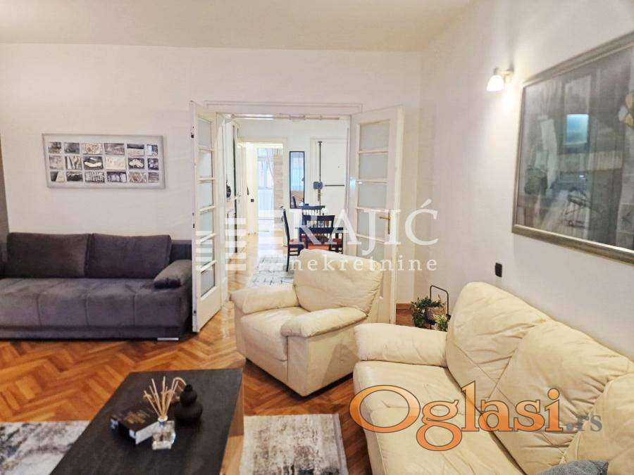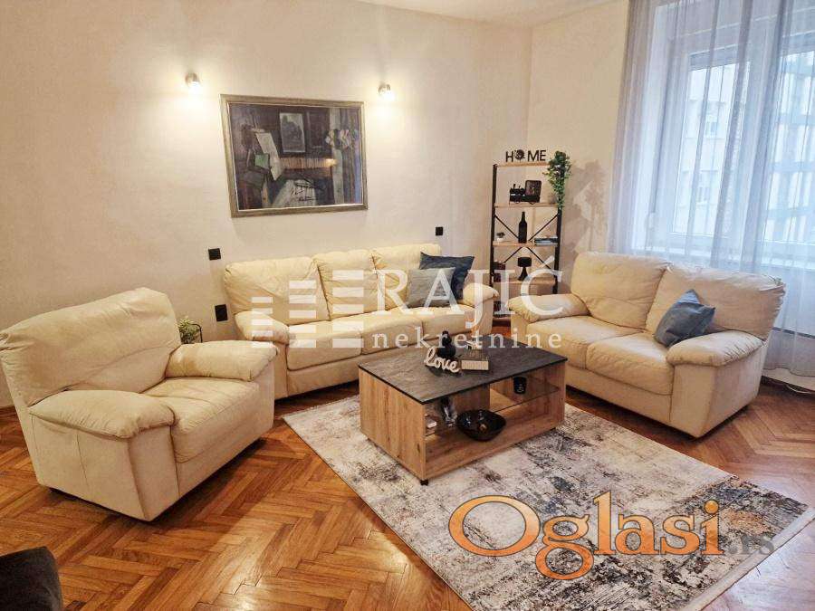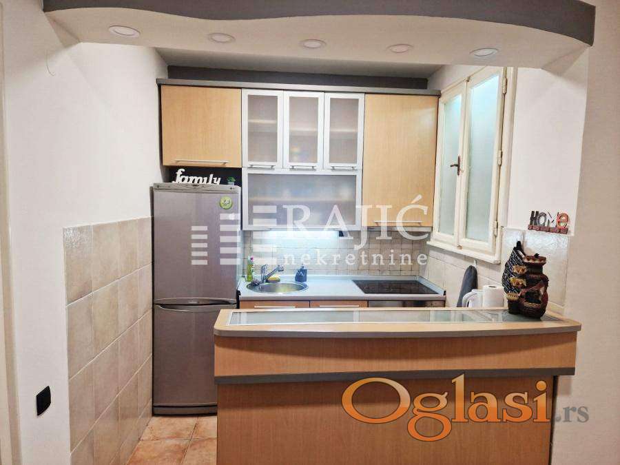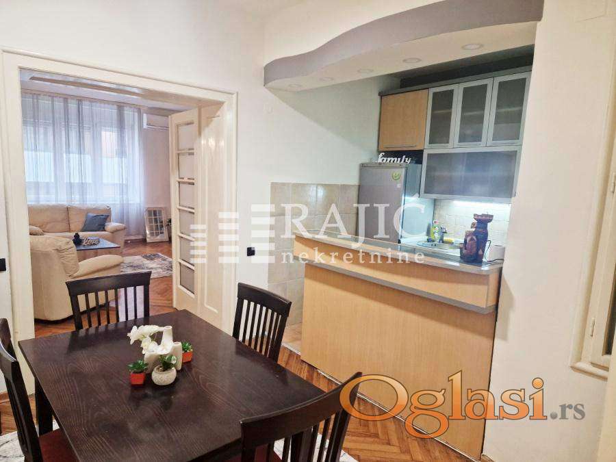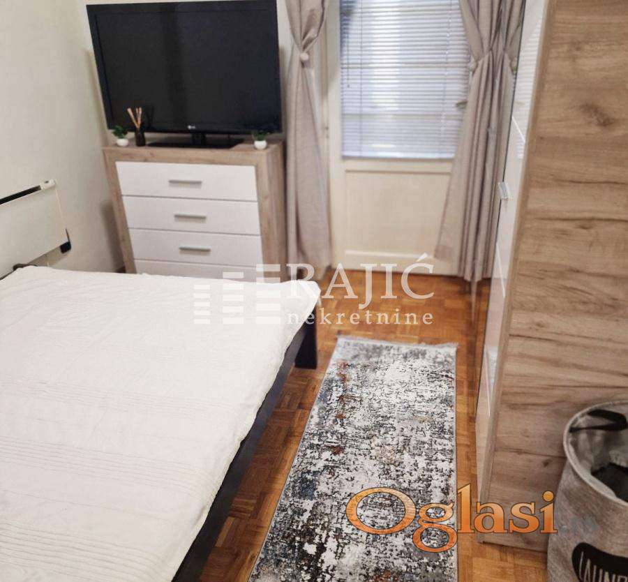 Izdaje se renoviran i namešten stam kod Vukovog spomenika. Struktura: velika dnevna soba, kuhinja sa trpezarijom, spavaća soba, kupatilo, hodnik i zastakljena lođa. Zgrada nema lift. Grejanje je na norveške radijatore i klimu. Agencijska provizija 60%.