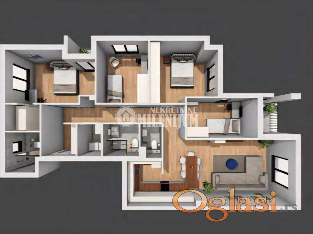 Po strukturi je petosoban, pažljivo projektovan da pruži maksimalnu funkcionalnost i komfor – idealan kako za porodičan život, tako i za one koji žele luksuzan prostor bez kompromisa.