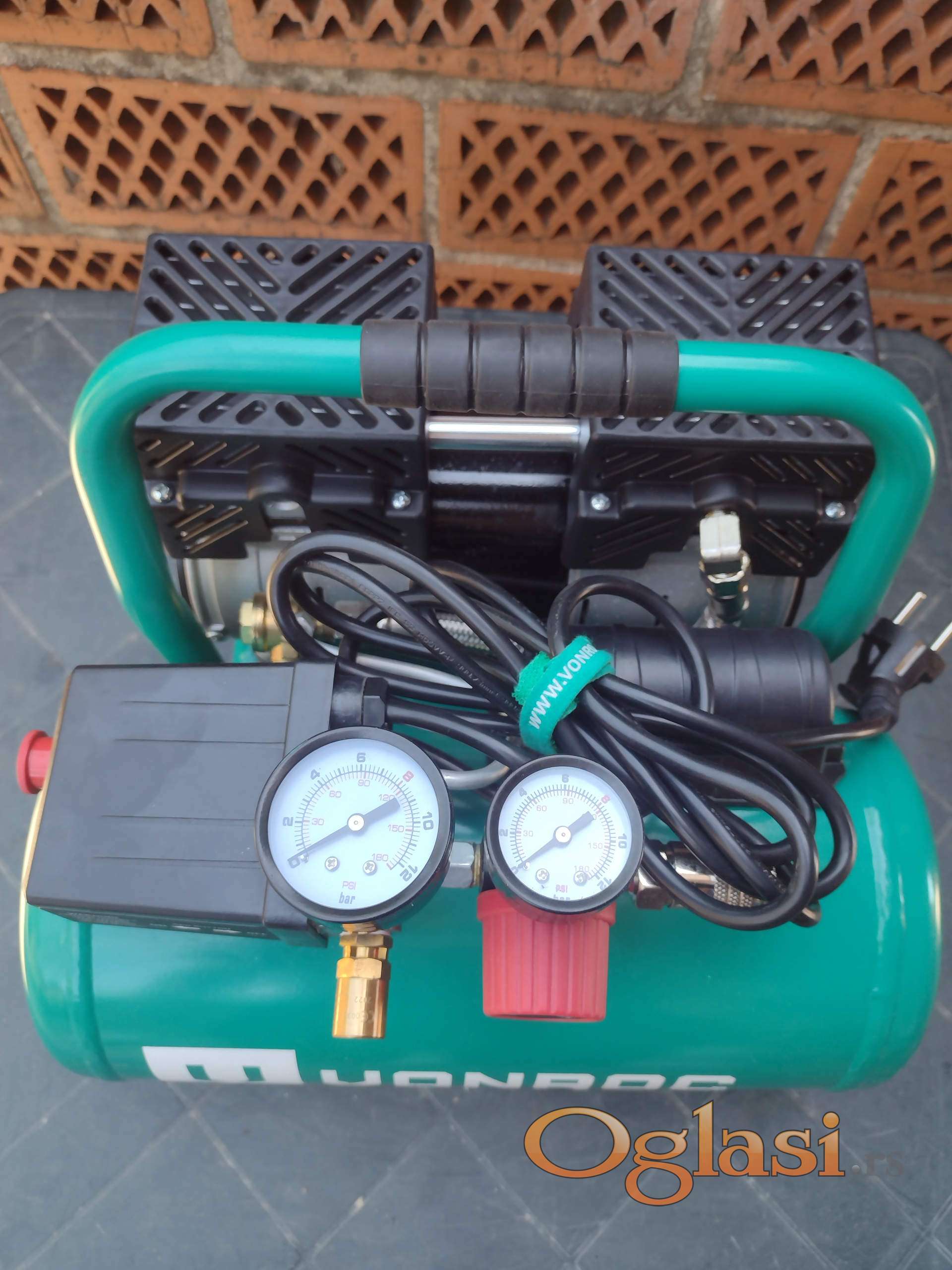 ✅Višenamenski Bešumni Bezuljni kompresor od 6 litra, 8 bara, sa brzim priključkom i ručkom za nošenje. Idealan za pneumatske alate, gume i prskanje.