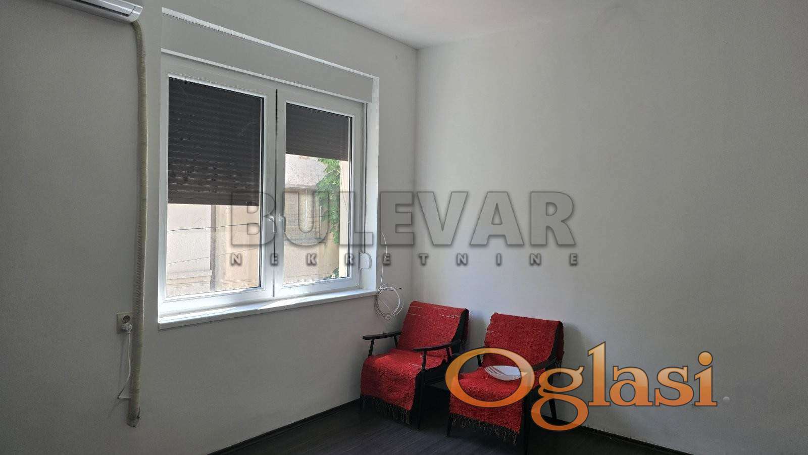 Izdaje se poslovni prostor površine 40m2 na prvom spratu u zgradi sa posebnim ulazom. Sastoji se od ulaznog hodnika, kuhinjskog dela, jedne veće prostorije i mokrog čvora. Grejanje je na struju. Izdaje se neopremljen. Pogodan je za gotovo sve kancelarijske delatnosti /advokati pre svega/. Lepo je osvetljen i orijentisan. Izdaje se ozbiljnim zakupcima na duži vremenski period. Obavezan depozit u visini jedne mesečne kirije.
