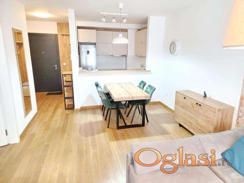 Stan je nov i luksuzan. Po strukturi je dvosoban, jugoistočno orijentisan i sastoji se iz ulaznog hodnika, dnevno kuhinjsko trpezarijskog dela, spavaće sobe, kupatila i terase. Prodaje se kompletno namešten. Idealan za investiciju izdavanja. Odmah useljiv!