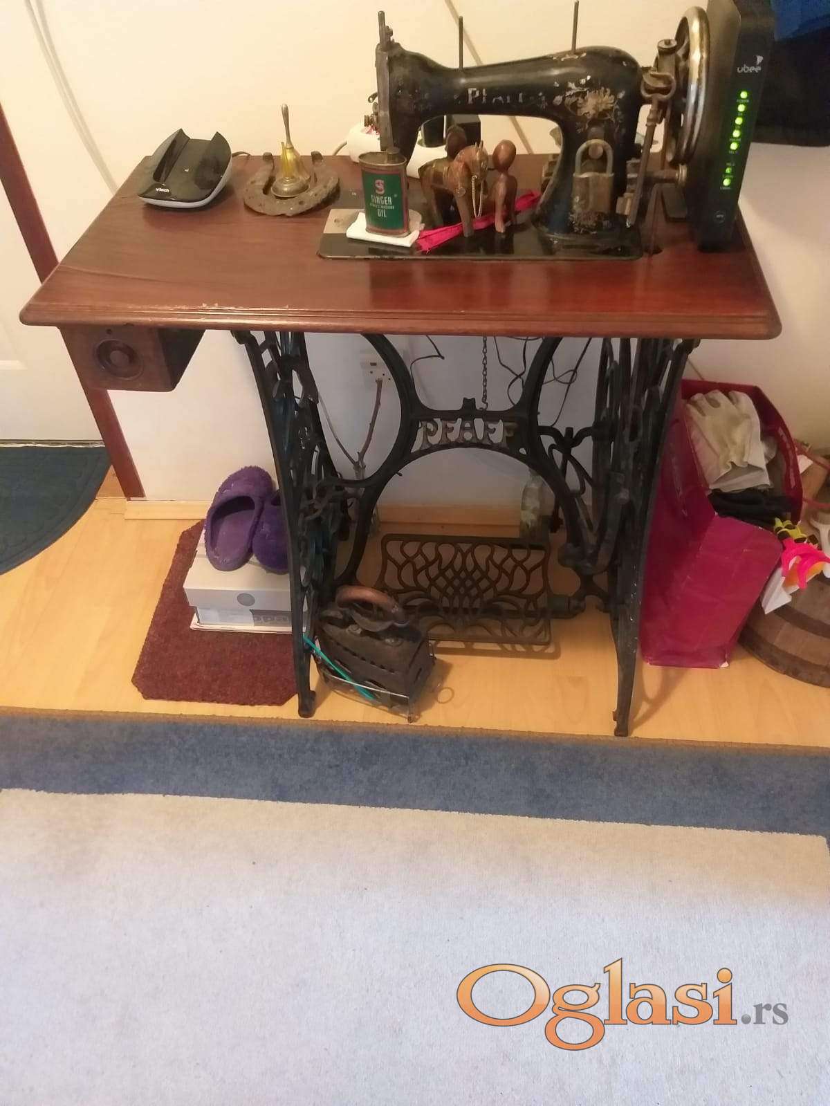Na prodaju je starinski sto za sivacu masinu prikazan na slici