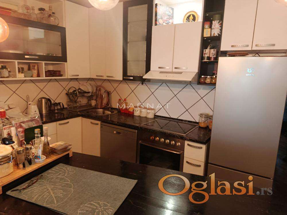 Stan se sastoji od ulaznog hodnika, prostrane dnevne sobe sa izlazom na terasu , kuhinje, spavaće sobe, terase i lodje. Kuhinja sa trpezarijom je blago izdvojena, funkcionalna i lepo organizovana. Sa terase se pruža prelep, otvoren pogled na zelenilo. Spavaća soba poseduje ugradne plakare i uklopljen radni prostor, a iz nje se izlazi na lođu. Kupatilo je renovirano i opremljeno novom galanterijom.