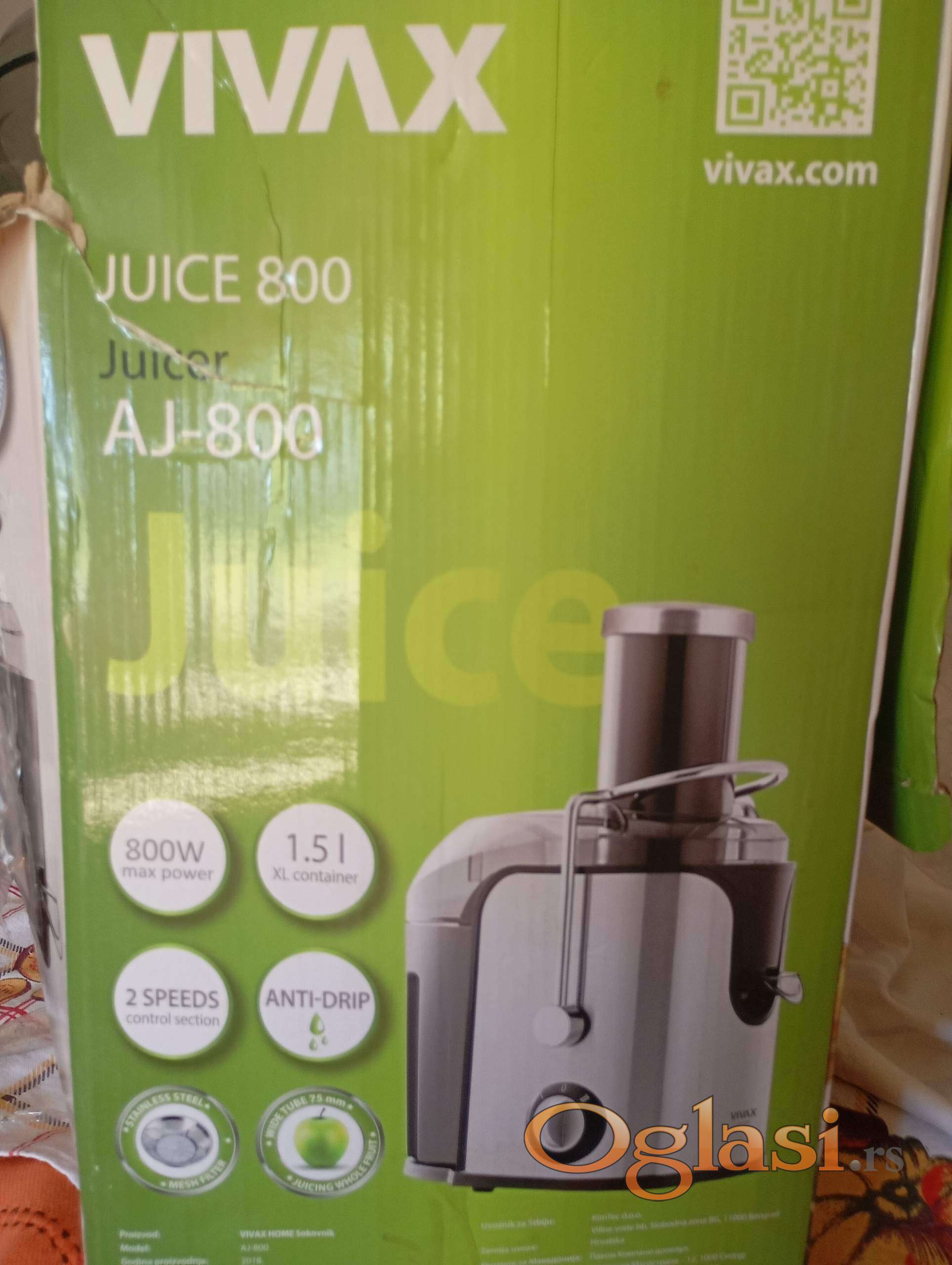 Нов некоришћен соковник VIVAX AJ-800, запремина 1,5 л, 800 W, против цурења, две брзине.