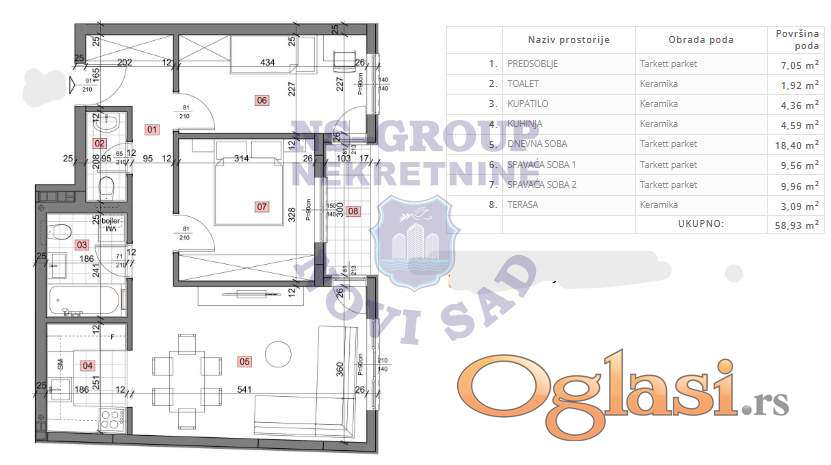 Trosoban stan u Petrovaradinu, 59m2