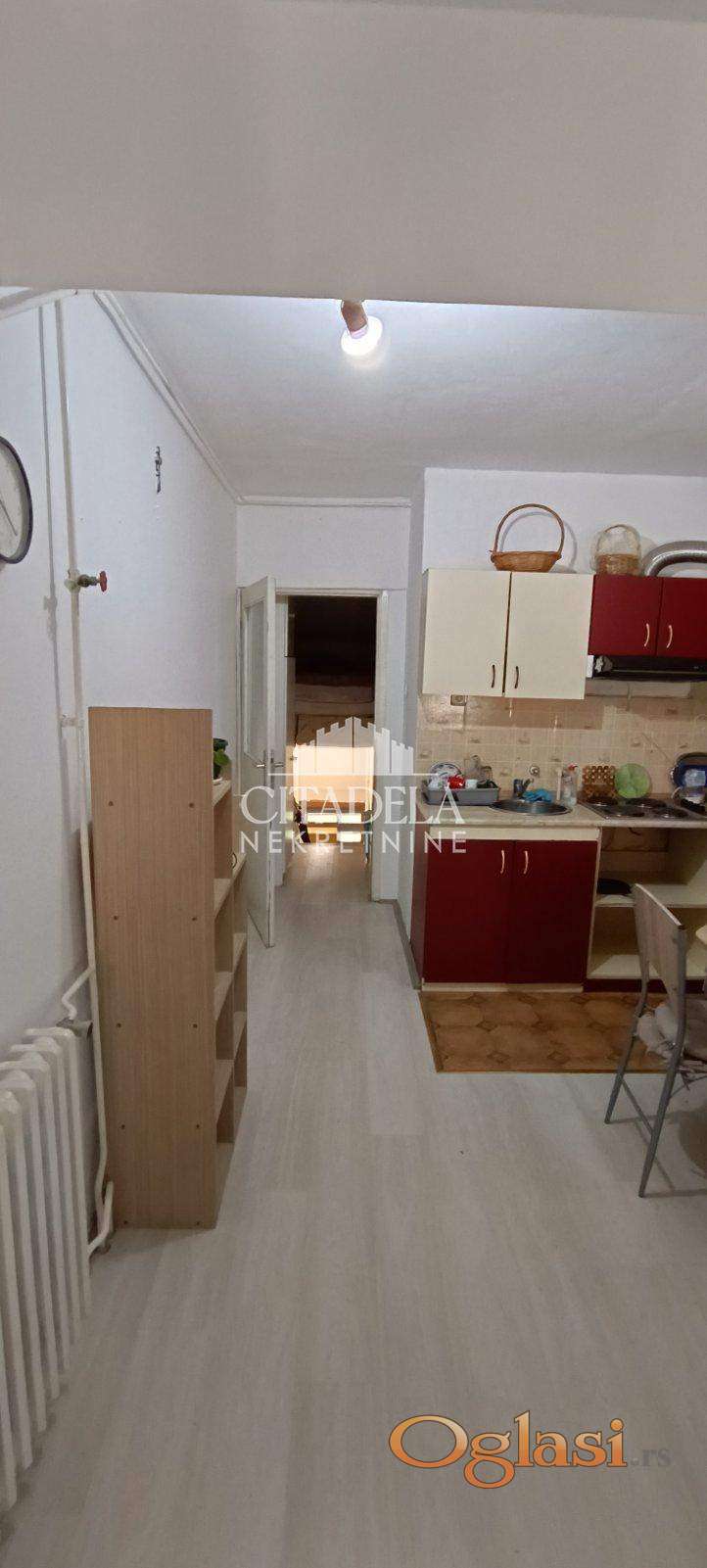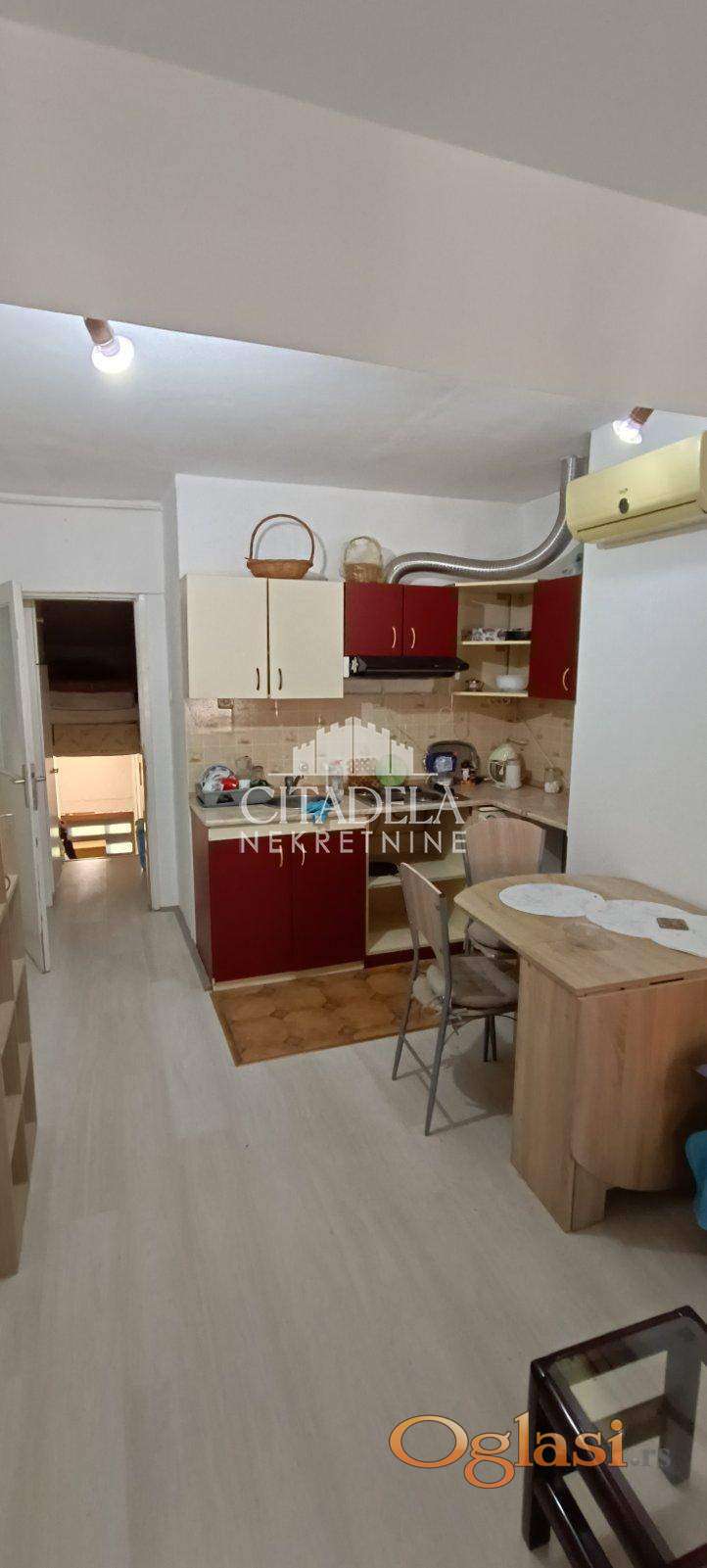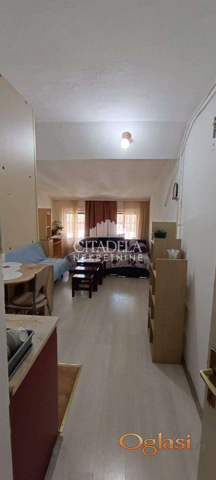 Funkcionalna garsonjera u zgradi od bele faswadne cigle. Niske cene režija i odmah useljiv. BNlizina svih infrastrukturnih objekata potrebnih za funkcionalni život. Depozit obavezan.