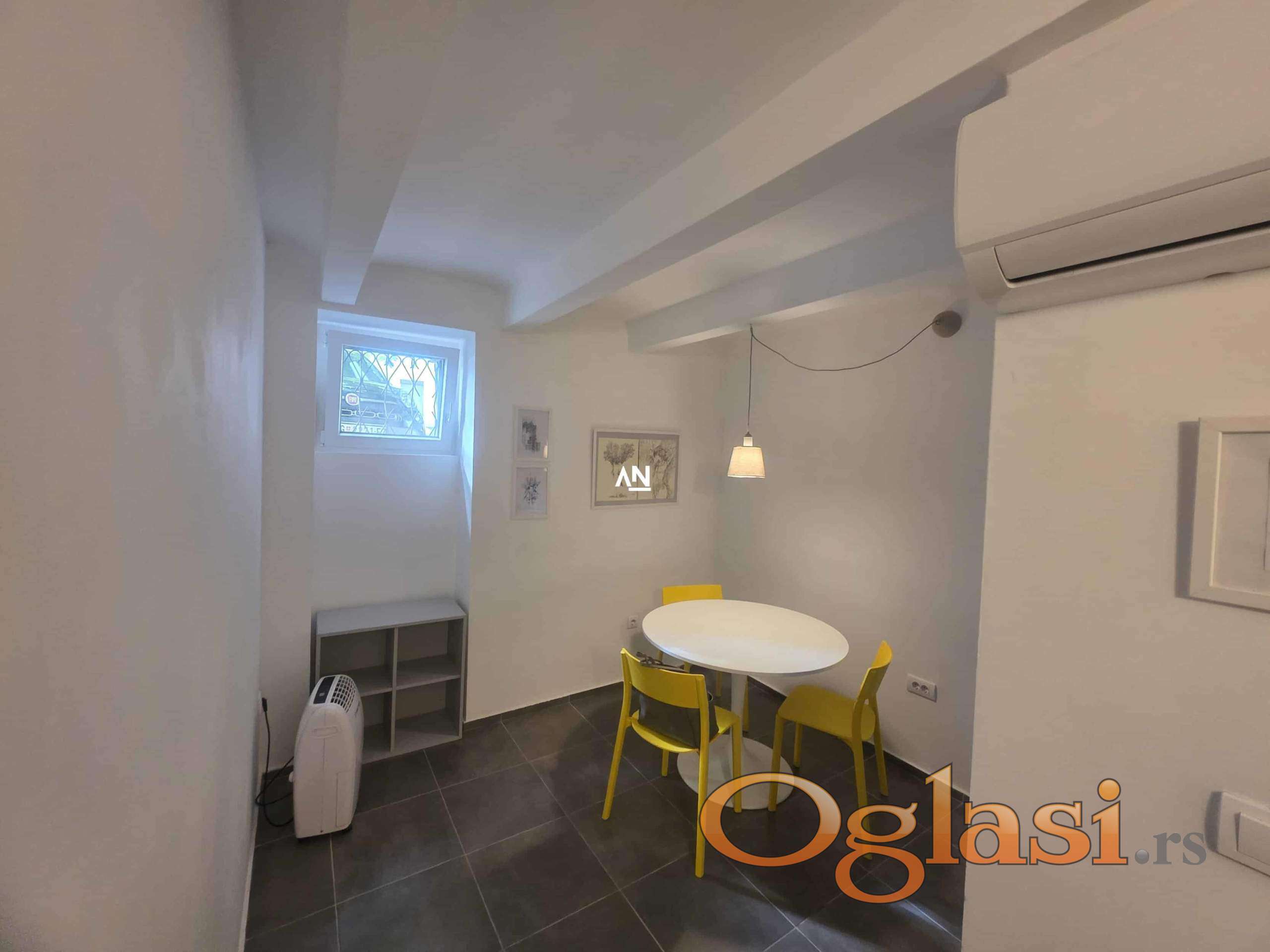 Odličan jednosoban stan, kompletno luksuzno renoviran i opremljen. Nalazi se u suterenu salonske zgrade. Pored stana su stanovi. Odmah je useljiv. Plaćanje mesečno i jedna kirija depozita. Telefon agenta 063 254453