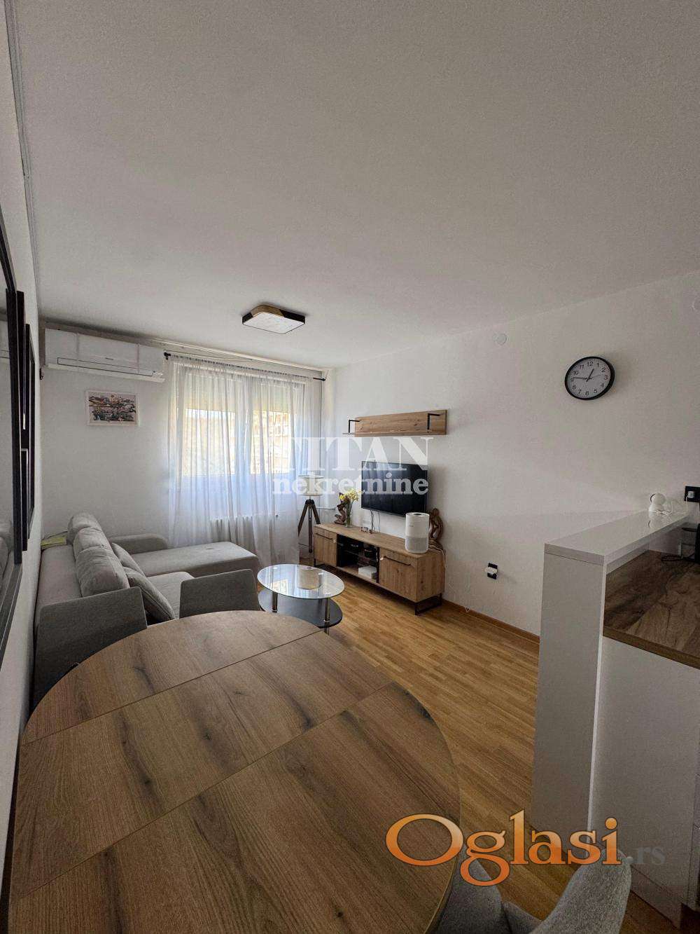 Popis stvari uz stan:Hiesense smart inventer klima,LG smart TV ( dnevna ),Spavaca VOX TV,Whirlpool inventer kombinovani frizider,Bosch ugradna masina za pranje sudova,Bosch ugradna ploca,Beko ugradni sporet,Haier inventer masina za pranje vesa,Bosch masina za susenje vesa,Ariston bojler,Ugaona garnitura,Club sto,Komoda za tv,Cela kuhinja,Ugradni plakar u hodniku,Krevet spavaca,Orman,Stolice,Sto trpezarijski ( mehanizam za razvlacenje ) radjen po meri, noge su od metala