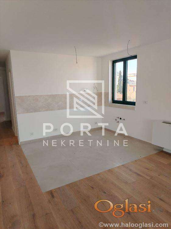 Dnevni boravak sa kuhinjom i trpezarijom u open space konceptu izlazi na prelepu terasu, dva moderna kupatila, dok dve spavaće sobe pružaju maksimalan komfor – uključujući master sobu sa sopstvenim kupatilom.