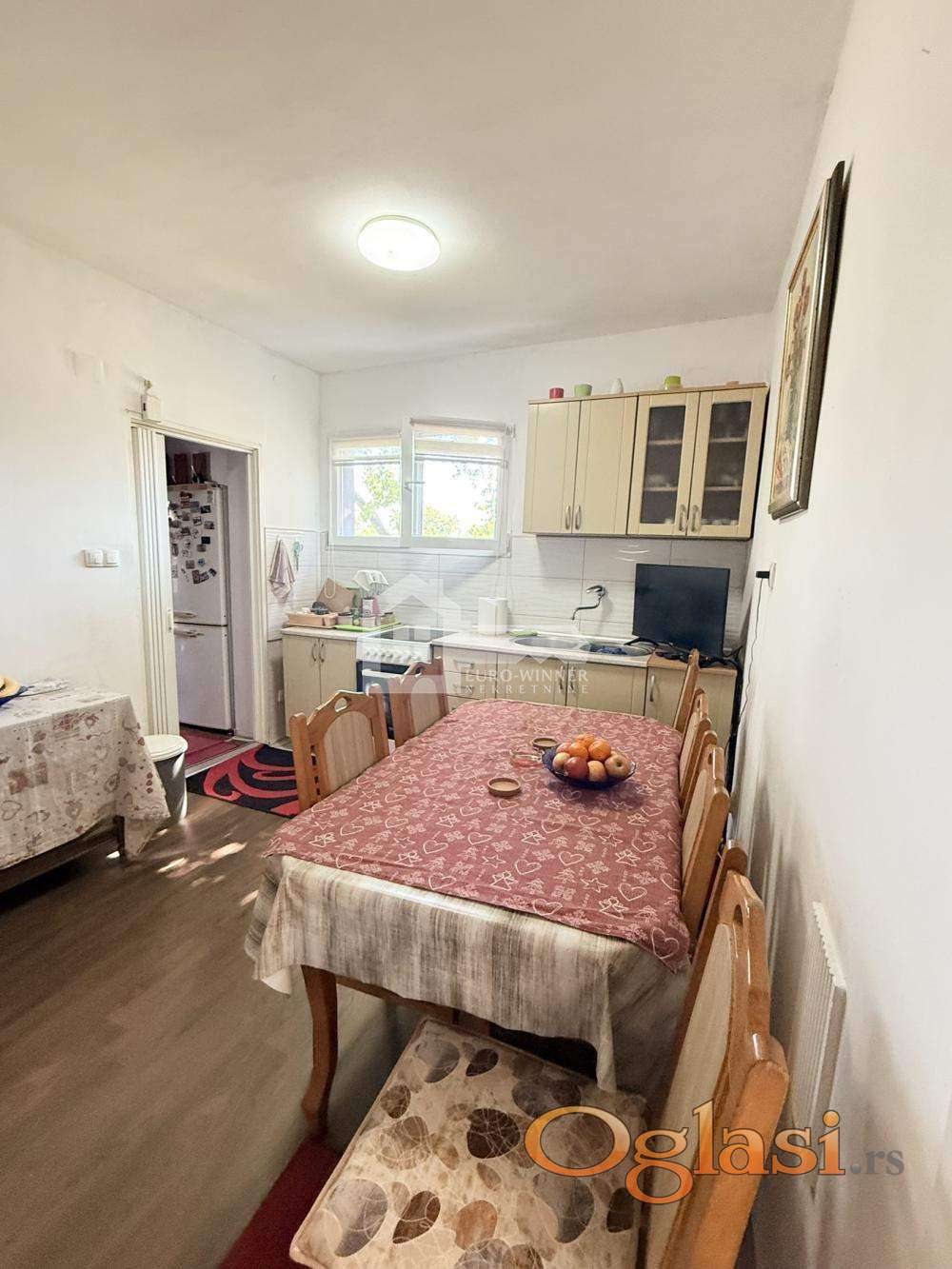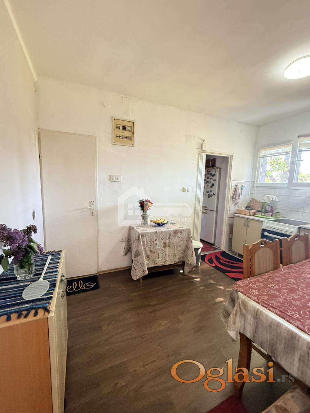 Prostorije: ulazna natkrivena veranda,hodnik,kuhinja sa trpezarijom,kupatilo i spavaća soba.