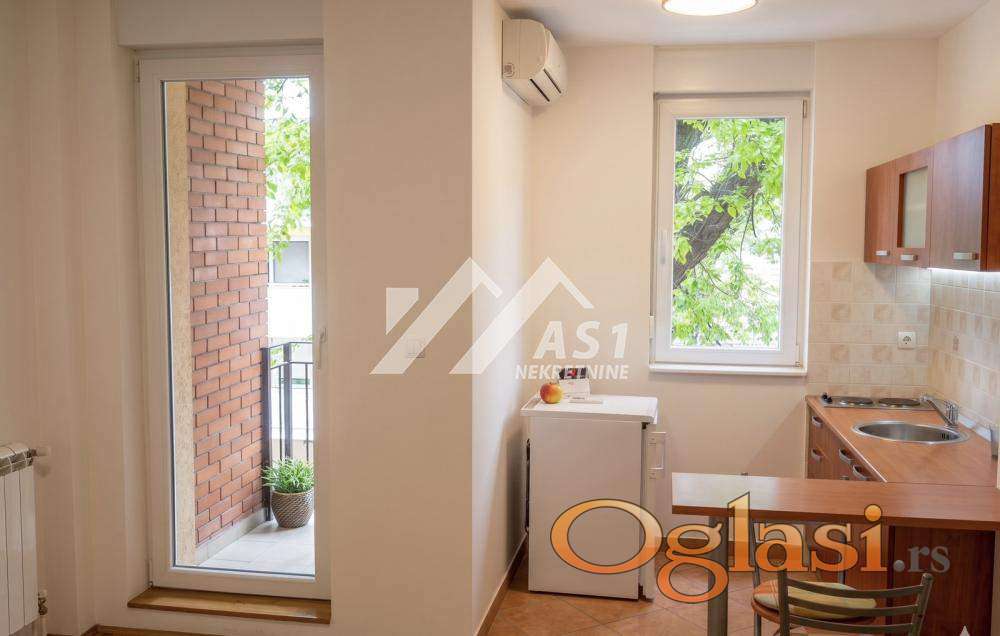 Garsonjera se izdaje potpuno nameštena, opremljena klimom i veš mašinom.