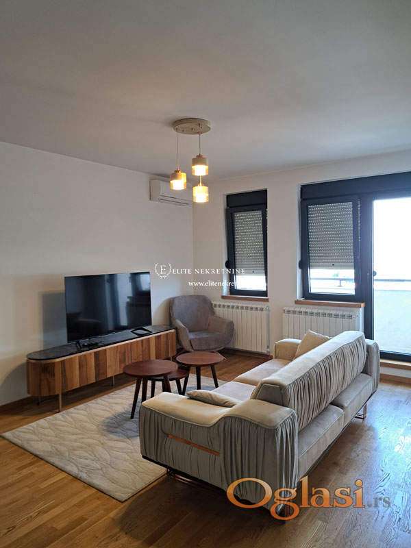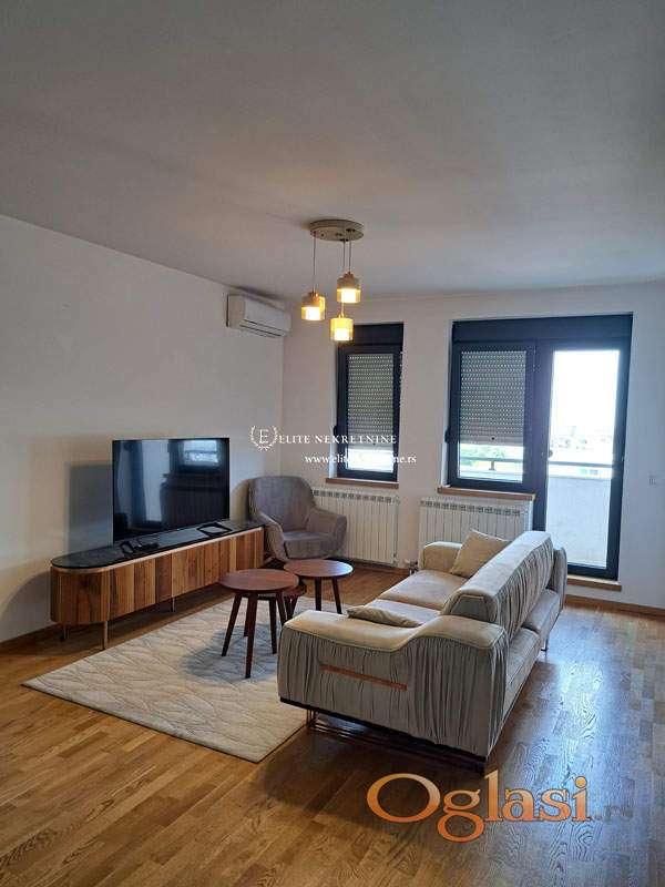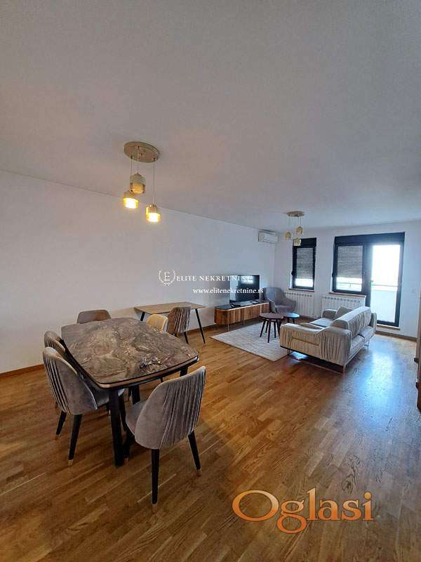 Trosoban luksuzno namešten stan . Prostran i svetao dnevni boravak u sklopu trpezarije, nova ugradna kuhinja, 2 spavaće sobe, 2 kupatila, terasa.