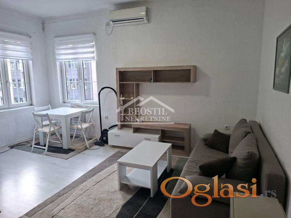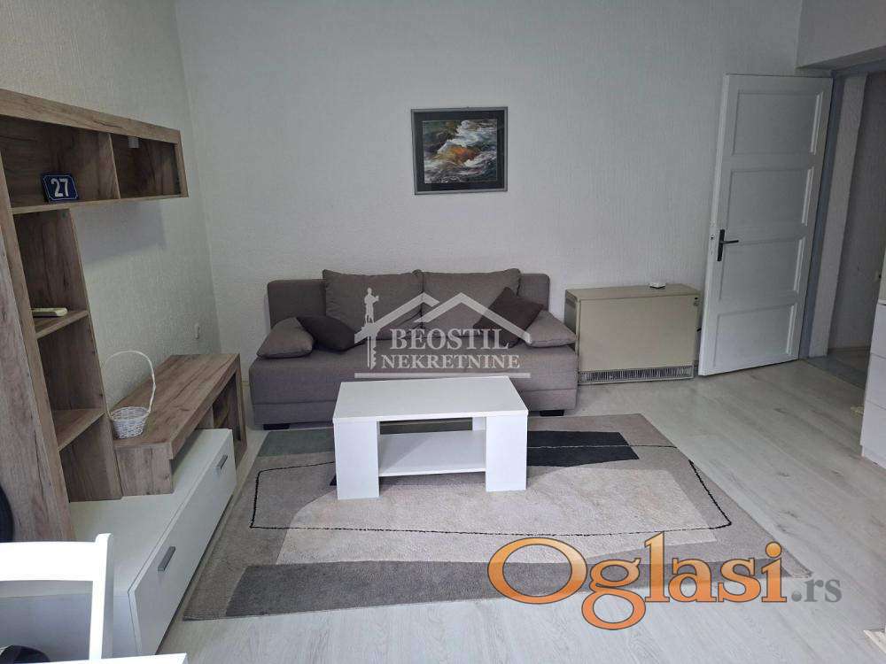 Izdaje se potpuno renoviran jednoiposoban stan na odličnoj lokaciji u centru grada u Sarajevskoj ulici pored hotela "Rex". U stanu je kompletno nov nameštaj i bela tehnika. Stan je dvostrano orijentisan, veoma svetao i poseduje terasu kroz koju se ulazi u stan. U okolini zgrade su mnogobrojne prodavnice, banke, kafići, a i nedaleko je Beograd na vodi sa svim svojim sadržajima. Stan je idealan za bračni par ili mlade ljude koji žele da žive u centru grada, a ipak odvojeni od gradske buke. Stan je uknjižen na 35m2 ali mereno ima 40m2. Grejanje je na TA peć ili klima urađaj.