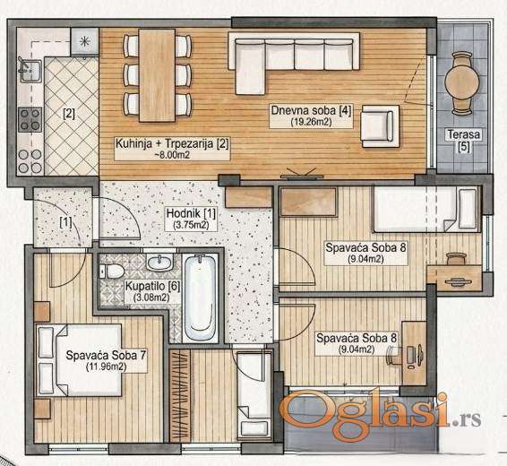 PRODAJA TROSOBNOG STANA U IZGRADNJI-TELEP