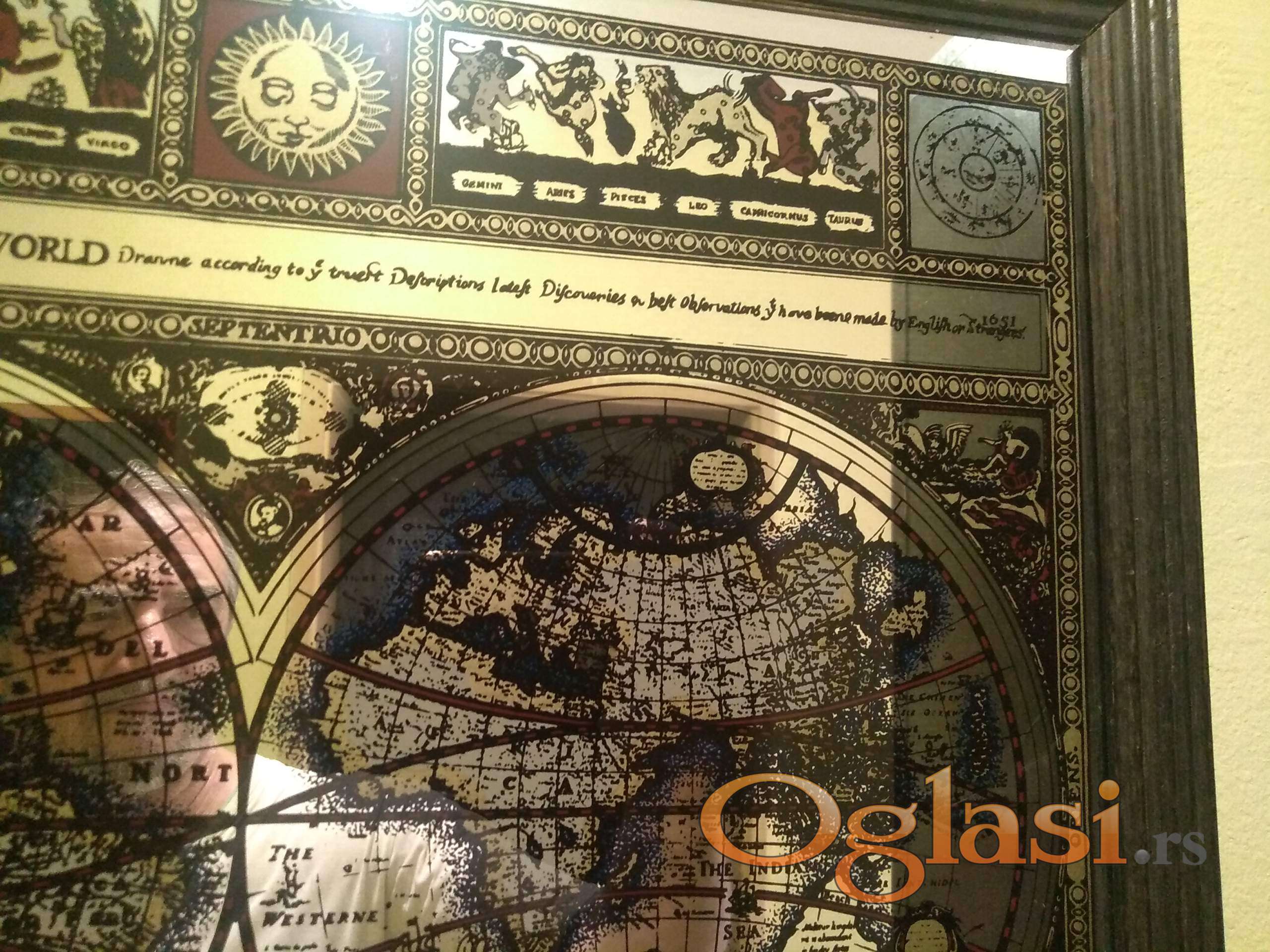 u ekstra stanju slika na ogledalu - karta sveta. dimenzije 50 x 40 cm troškove dostave snosi kupac