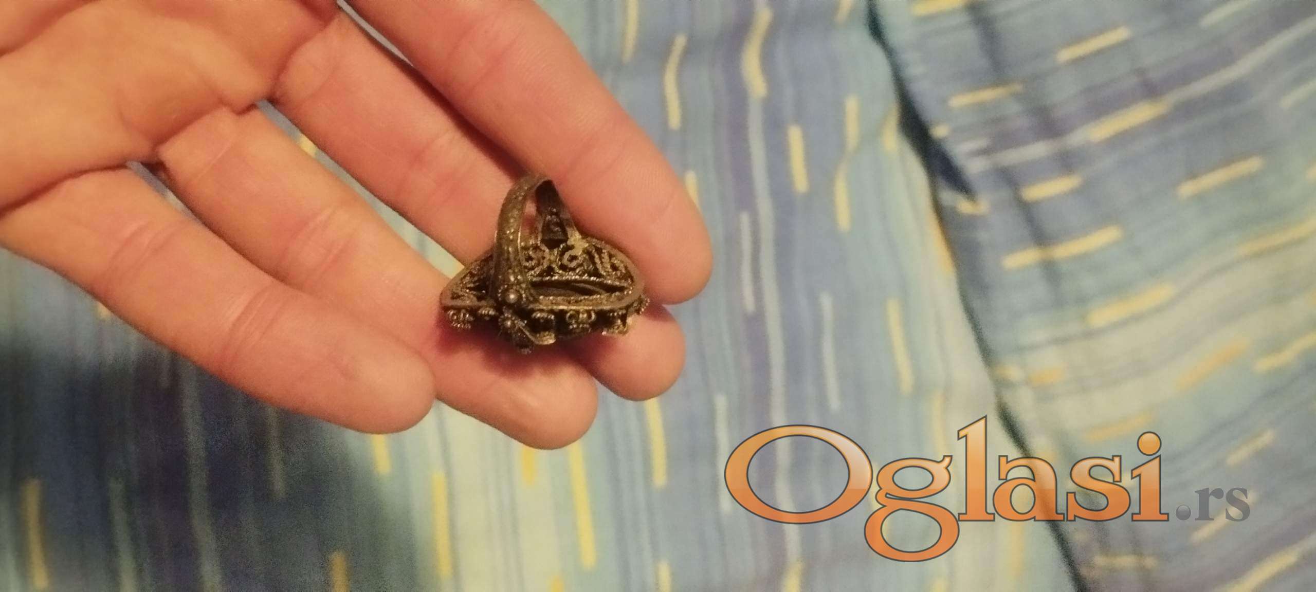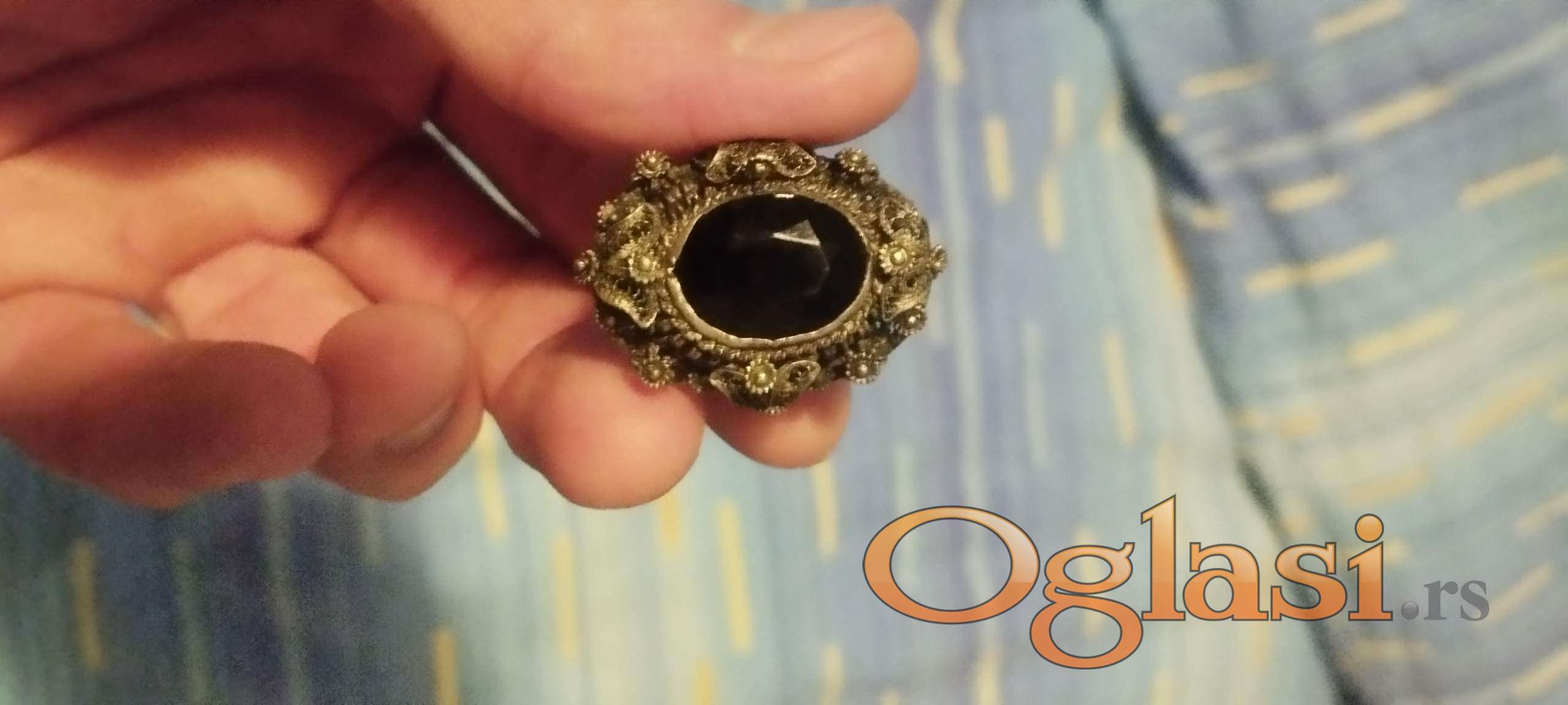 Na prodaju starinski prsten sa onix kamenom, vintage.