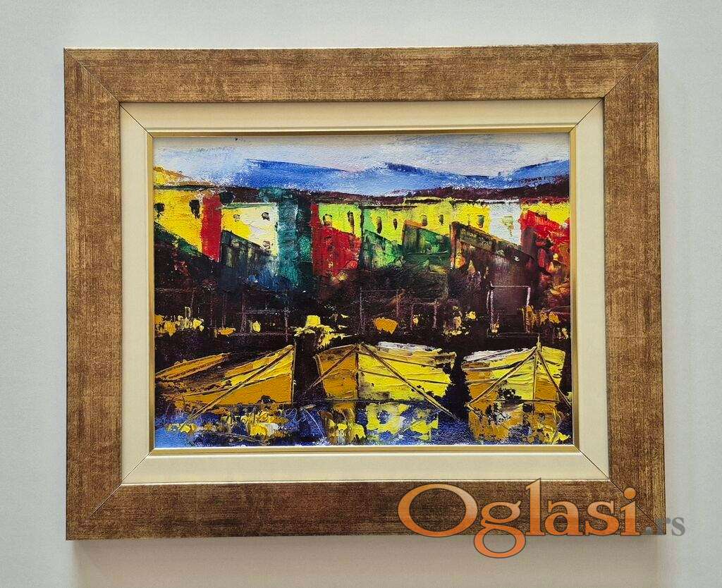Ulje na platnu Noc iznad mora, slika tri. Prelepo umetnicko delo. Slika je uramljena u jako lep ram, dimenzije slike sa ramom 45 x 37. Privatna kolekcija.