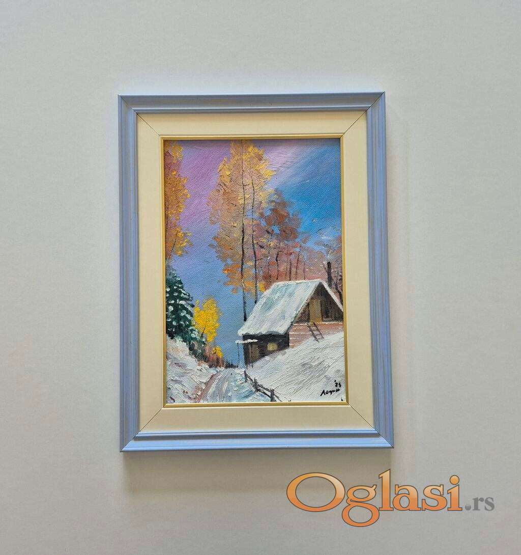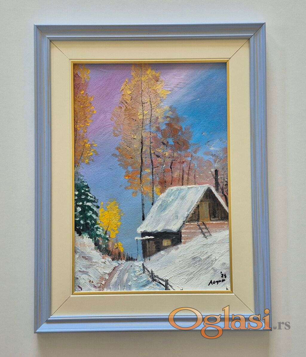 Ulje na lesonitu - Romanticna zima, prelepo!