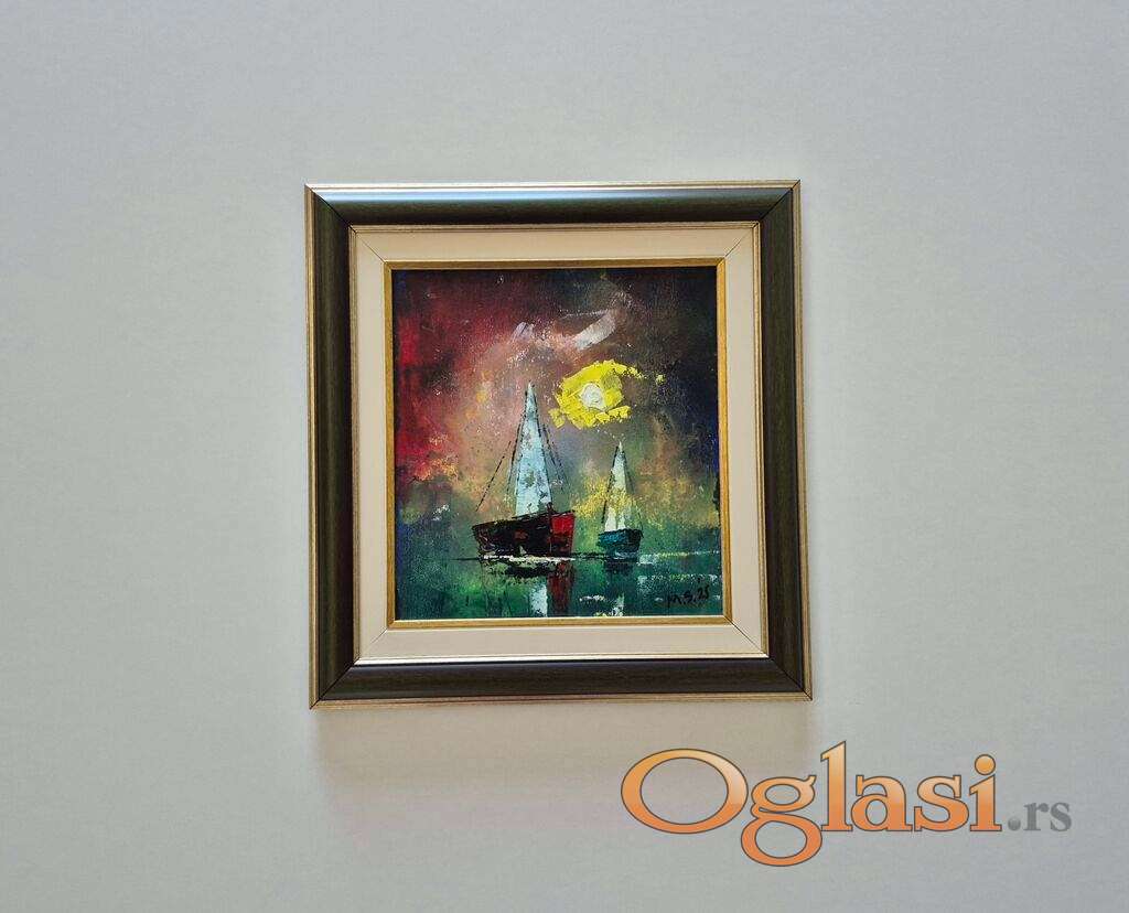Ulje na platnu Na moru 64, prelepo umetnicko delo. Slika je uramljena u jako lep ram, dimenzije slike sa ramom 40 x 38. Privatna kolekcija.