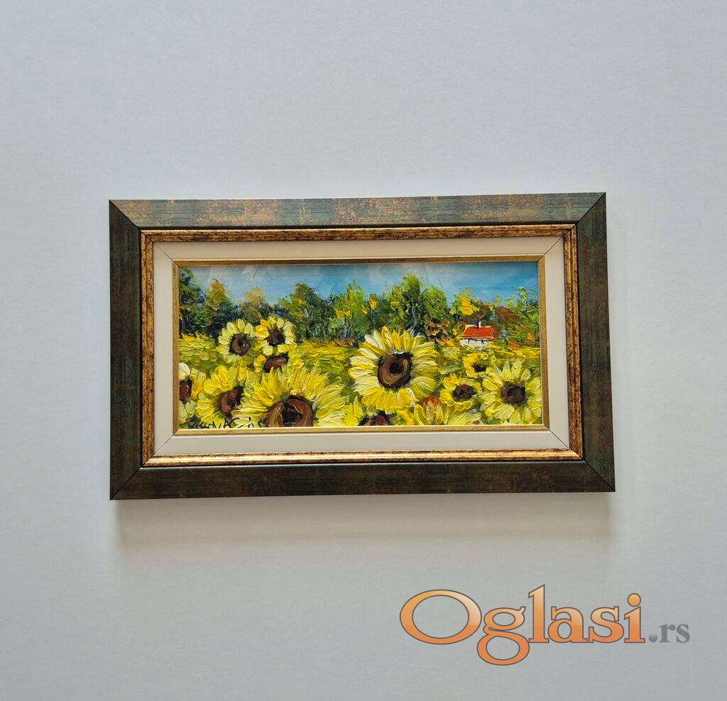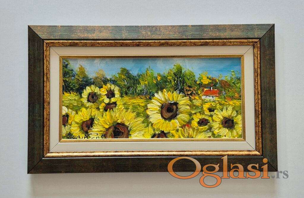 Ulje na platnu - Kuca u suncokretima, prelepo!