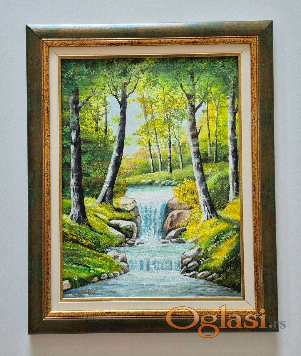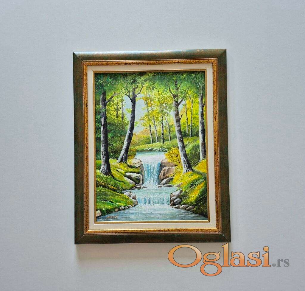 Ulje na platnu - Sumski vodopad, prelepa slika!