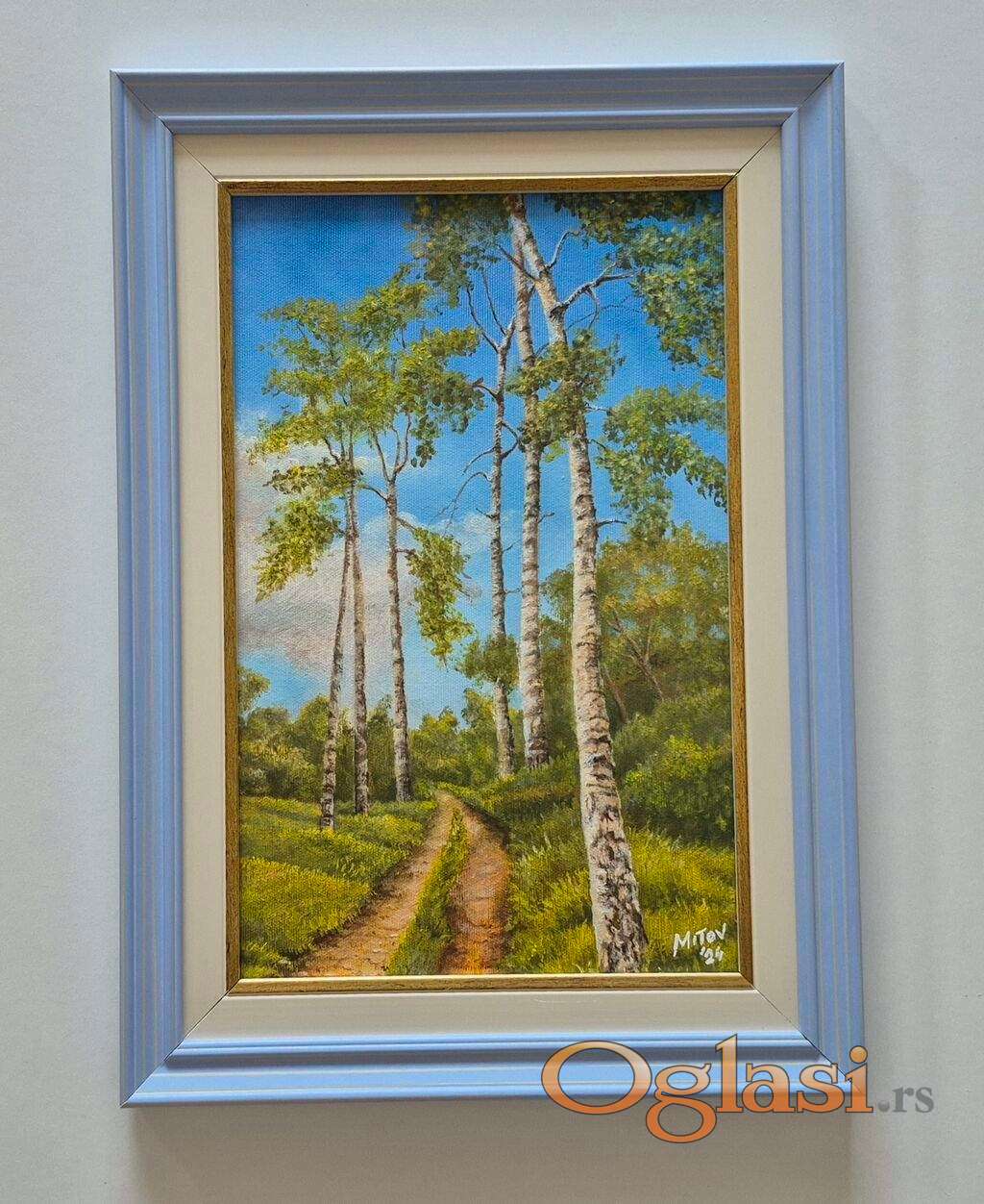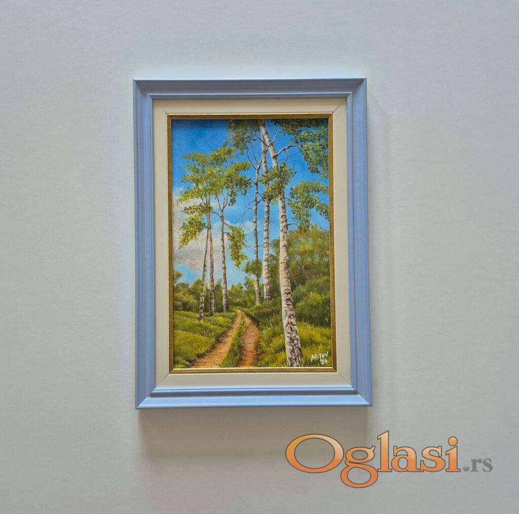Ulje na platnu Prolece u prirodi, prelepo umetnicko delo. Slika je uramljena u jako lep ram, dimenzije slike sa ramom 46 x 33. Privatna kolekcija.