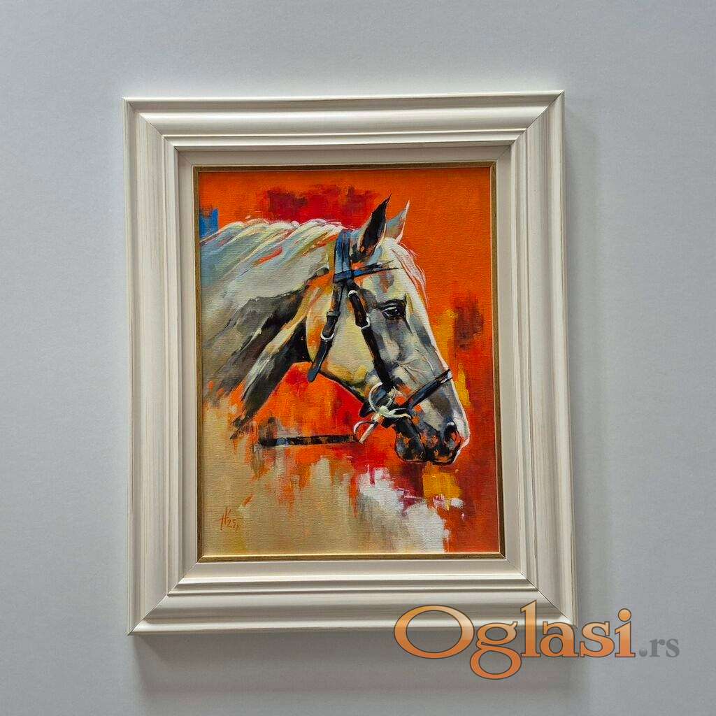 Ulje na platnu Slika konja, broj deset. Prelepo umetnicko delo. Akademski slikar. Slika je uramljena u jako lep, luksuzan ram. Dimenzije slike sa ramom 61 x 51. Privatna kolekcija.