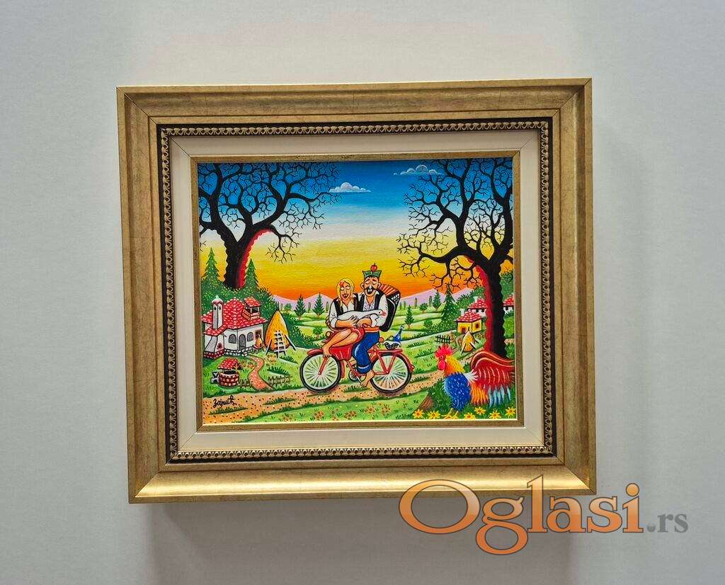 Naiva, ulje na platnu Seoska ljubav, prelepo umetnicko delo. Slika je uramljena u jako lep ram, dimenzije slike sa ramom 42 x 37. Privatna kolekcija.