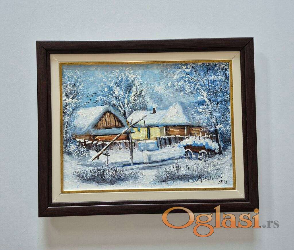 Ulje na platnu - Zima na salasu, prelepa slika!
