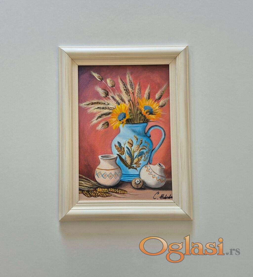 Ulje na platnu - Plavi bokal sa cvecem, prelepo!