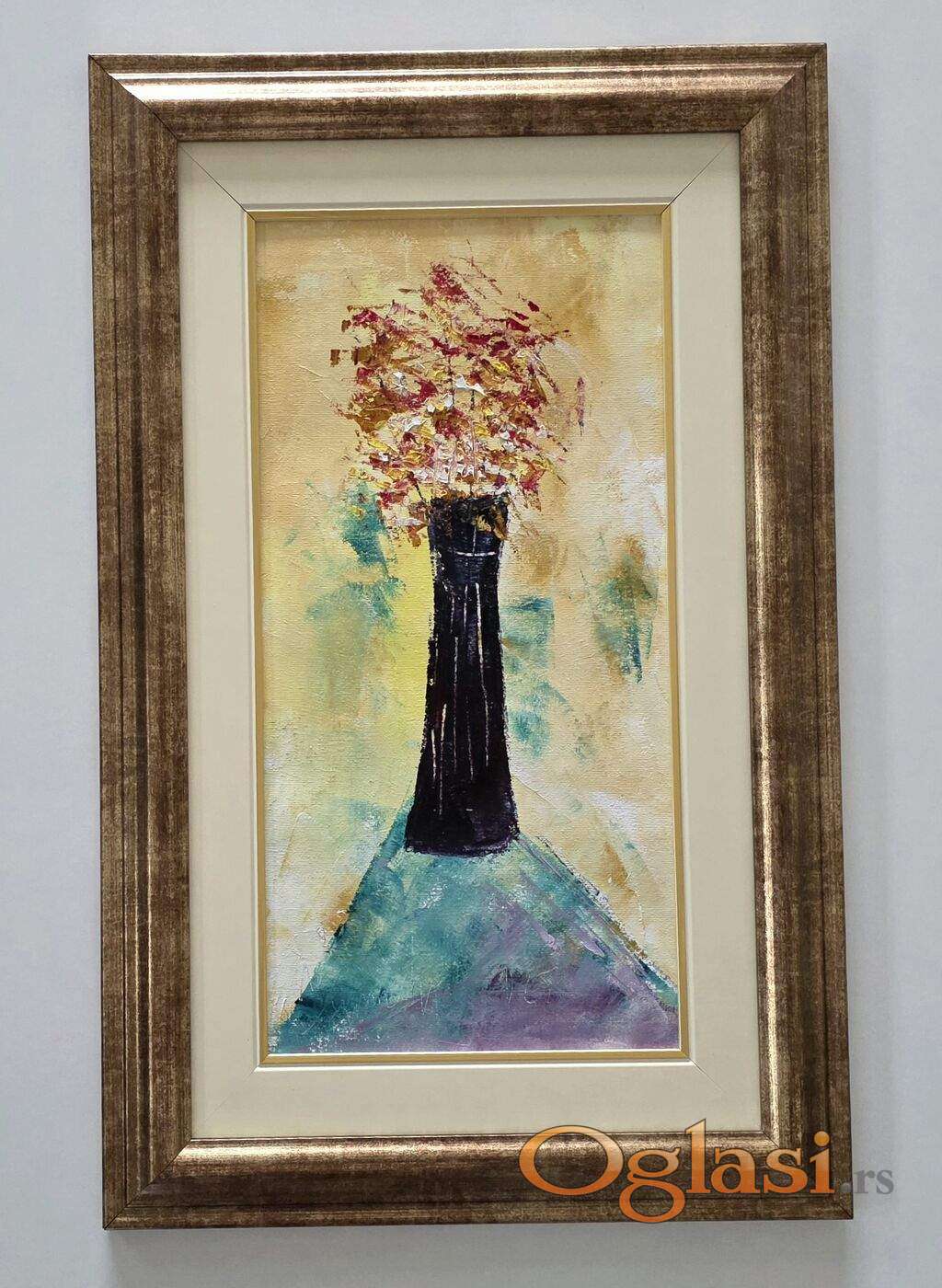 Ulje na platnu - Vaza sa cvecem, prelepa slika!
