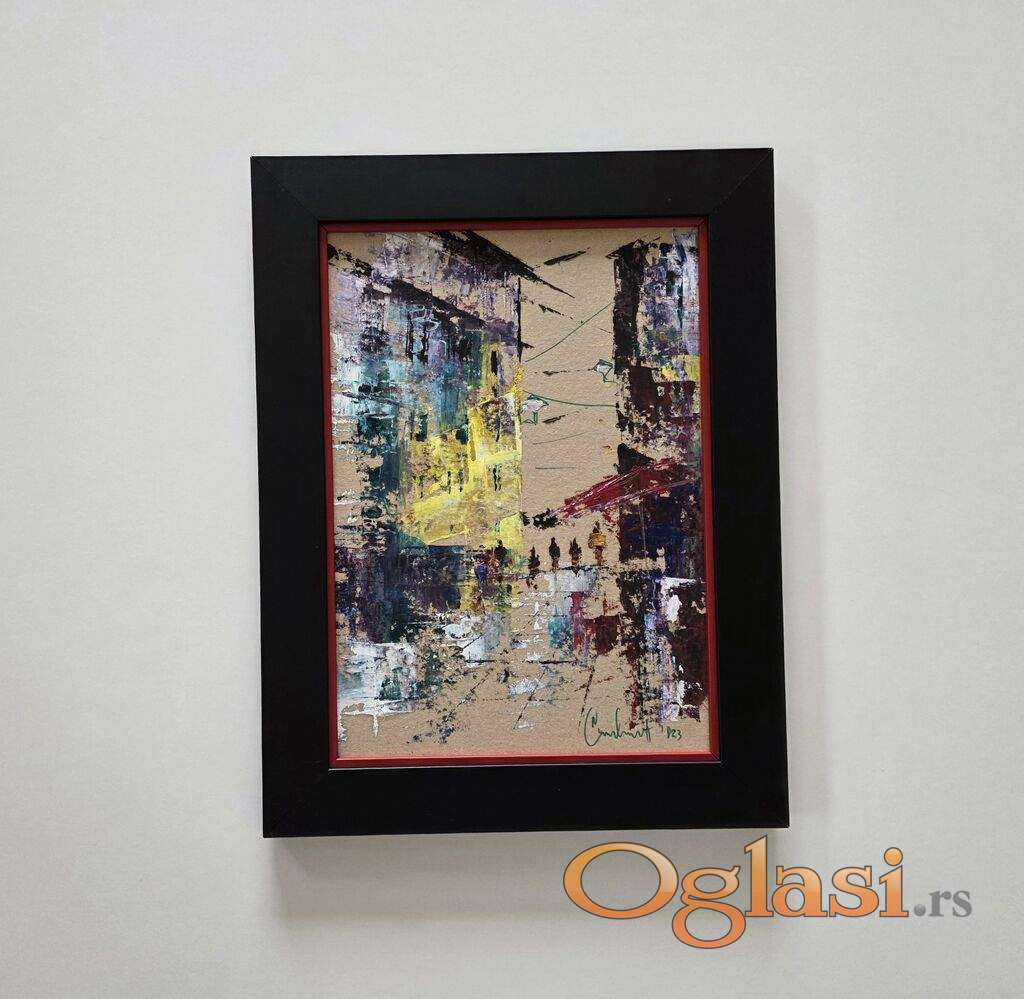 Ulje na kartonu - Grad, prelepa slika!