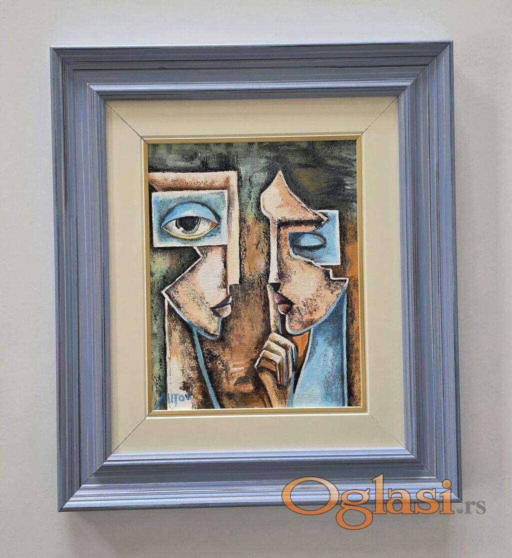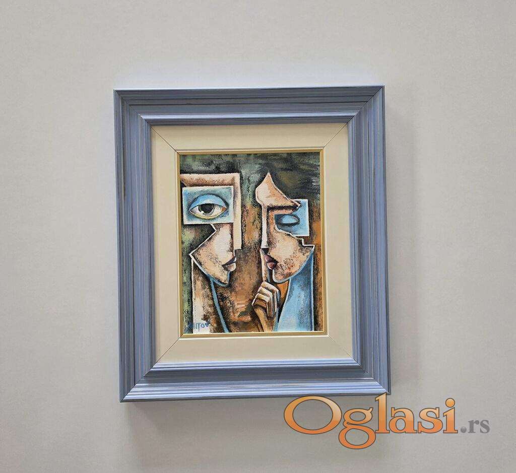 Ulje na platnu Tajna, prelepo umetnicko delo. Slika je uramljena u jako lep ram, dimenzije slike sa ramom 42 x 36. Privatna kolekcija.